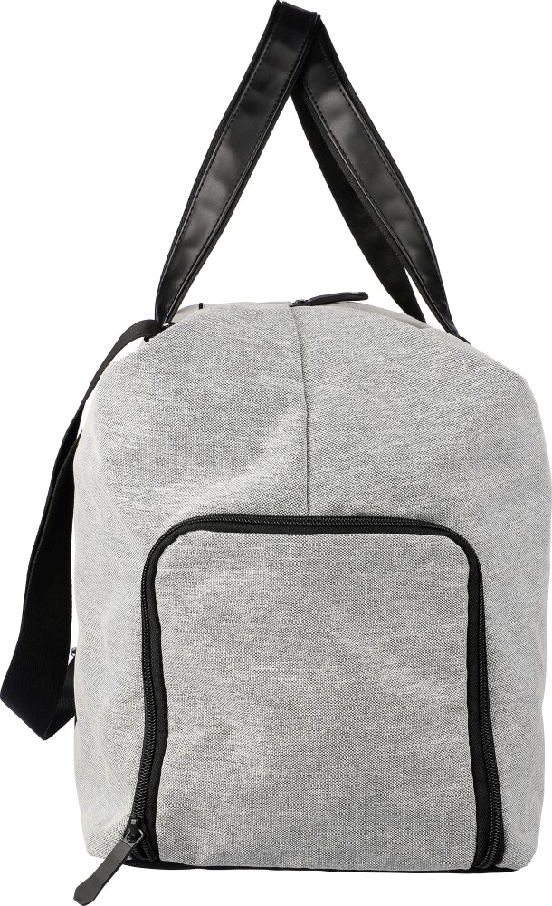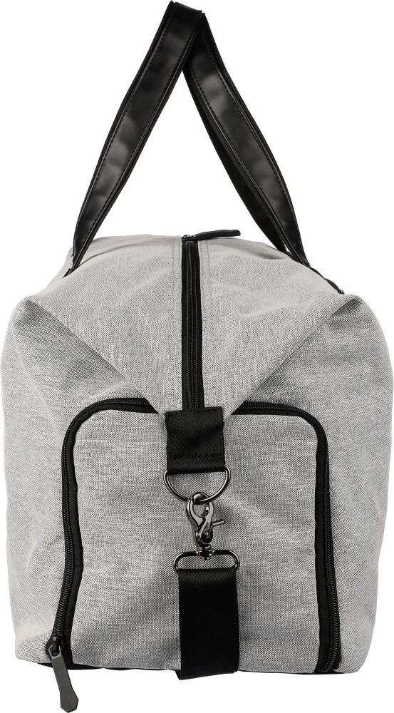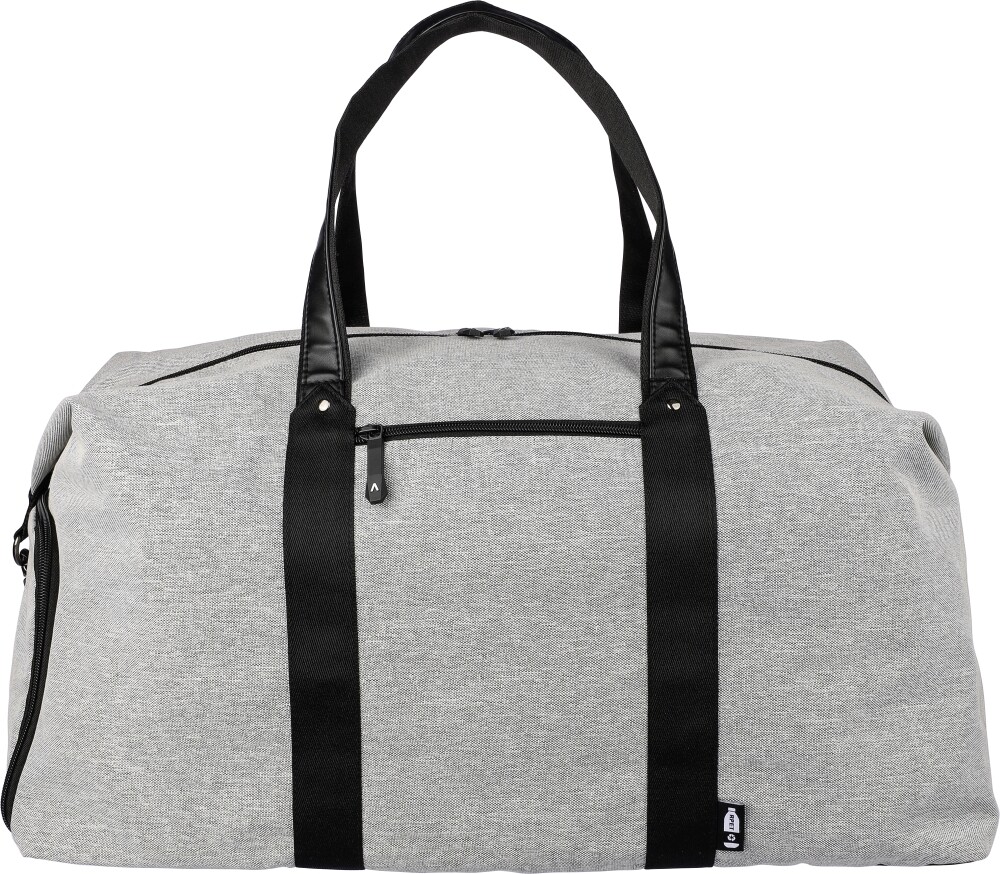 Taška z recyklovaného polyesteru 600D s 150D PU podšívkou a detaily z PU kůže. Se 4 mm pěnou na vnitřní straně a 1 mm PE deskou. Obsahuje malou přihrádku na zip na přední straně, velkou přihrádku na zip a boční kapsu na boty. Nastavitelný ramenní popruh. Obsahuje štítek rPET na přední straně.Rozměry: 39 x 56 cm