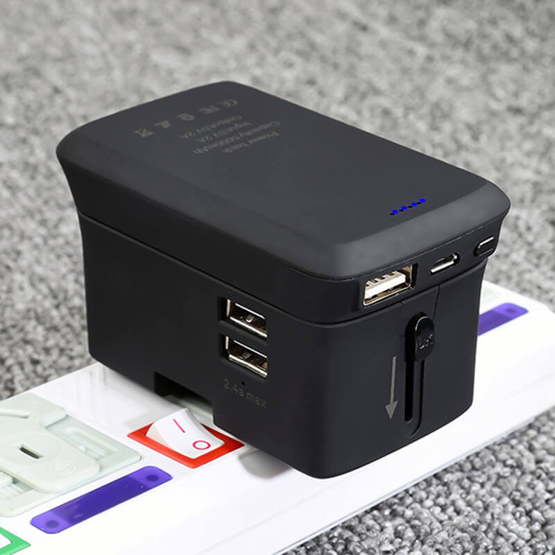 V univerzálním cestovním adaptéru se ukrývá vyjmutelná power banka pro pohodlné nabití mobilního přístroje kdekoliv a kdykoliv. Cestovní adaptér je vybaven zásuvkou pro Austrálii, Čínu, USA, UK a Evropu. K nabíjení nobilních zařízení ze sítě je možné využít dva USB výstupy. Skladné rozměry adaptéru a kapacita power banky 4000 nebo 5000 mAh dohromady vytváří ideální vybavení pro cestování. Samozřejmostí je možnost doplnění o vlastní potisk či nápis.