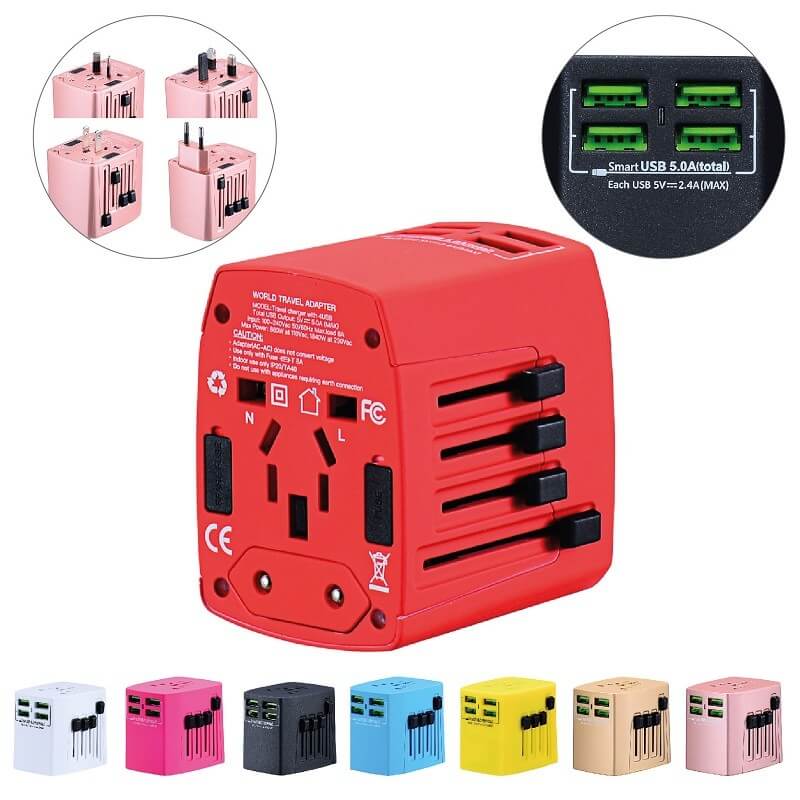 Při cestování je potřeba počítat se vším. A určitě se nechcete dostat do situace, kdy si nebudete moci nabít své mobilní zařízení kvůli jiné zásuvce. Z toho důvodu je dobré mít u sebe cestovní adaptér. Tento cestovní adaptér je ideální pro cestování do Austrálie, Číny, USA, UK a Evropy. Nabízí 4 USB výstupy pro nabíjení několika zařízení najednou. Každý výstup má 5V/1A. Pro cestování oceníte malé a skladné rozměry adaptéru. Vybrat si můžete z mnoha různých barev a zvolit si vlastní potisk. K dispozici je také praktické pouzdro.