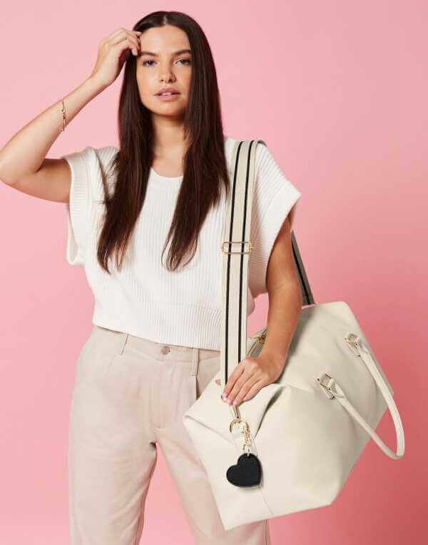 100% polyuretan (kožený vzhled), jemné Saffiano s měkkou podšívkou na dotek, rukojeti na přenášení ze stejného materiálu, odnímatelný nastavitelný popruh přes rameno, extra dlouhá hlavní přihrádka na zip pro snadný přístup, lesklé kovové detaily, vnitřní kapsa na cennosti na zip, vnitřní základní panel s ochrannými nožičkami, štítek TearAway pro snadnou změnu značky, kapacita: 25 litrů, rozměry: 53x26x24 cm, Max. plocha pro výšivku: 15 obrouček, Max. tisková plocha: 15x15 cm