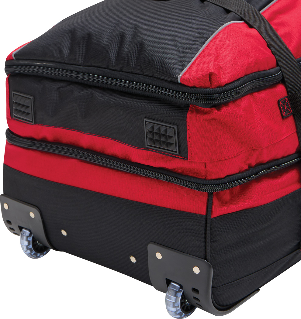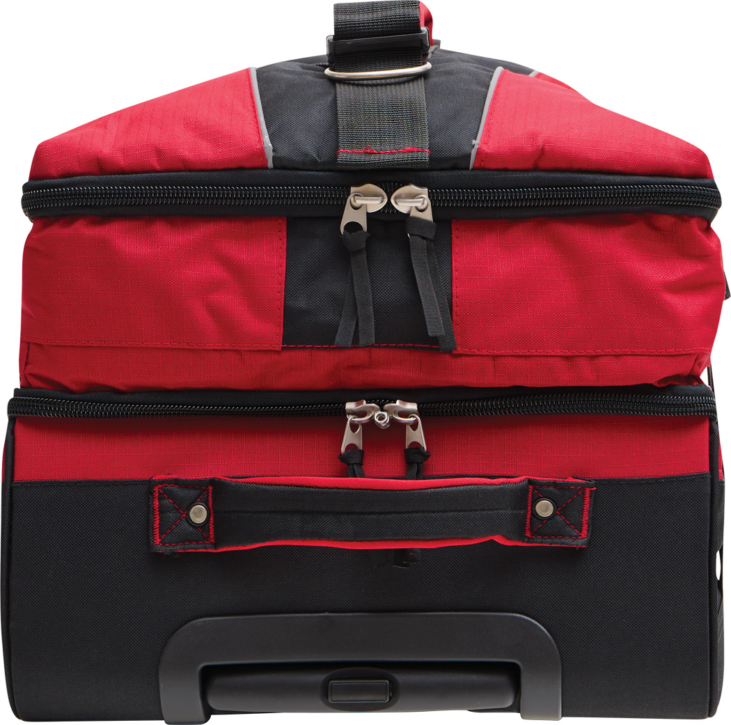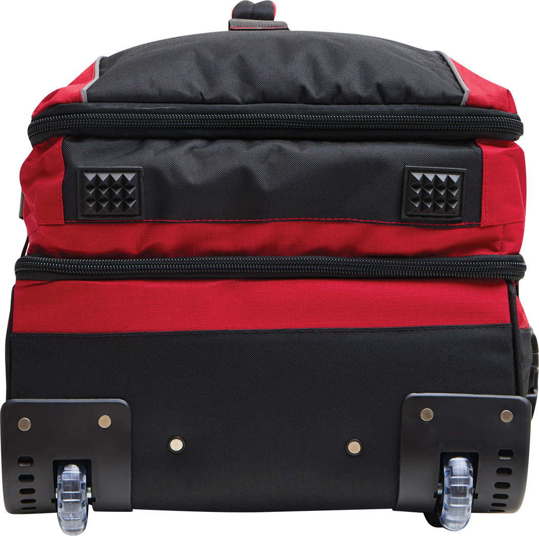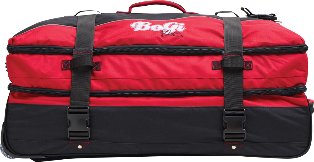 Cestovní taška na kolečkách BoGi XL: samostatné úrovně balení se zipem, hlavní přihrádka se 2 přepážkami, 1 síťovaná kapsa na zip na jedné z přepážek, 2 vnitřní kapsy na zip, 2 polstrovaná madla, zasouvatelný rám, 2 popruhy se zapínáním na patent, kolečka s hladkým chodem, ochrana hran, 2 lišty na ochranu před schody, nožičky ve spodní části, součástí balení je kombinační zámek.