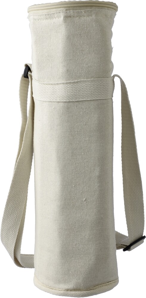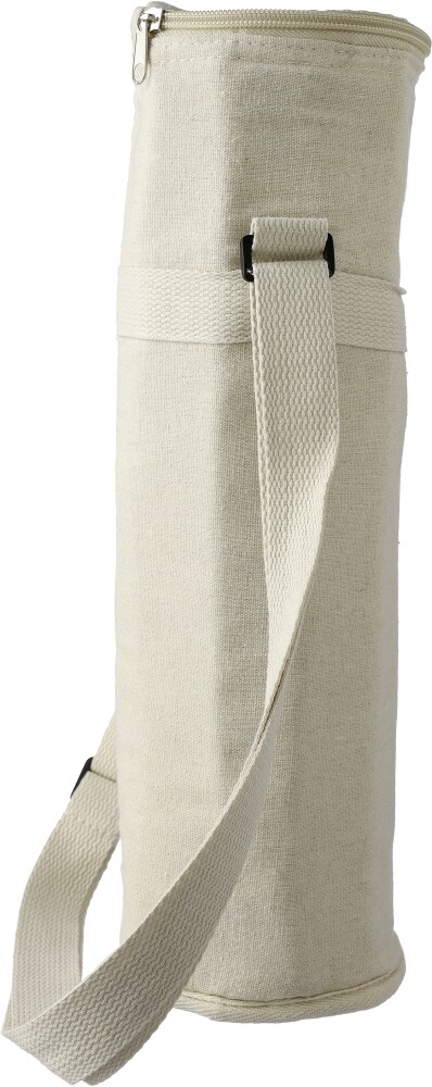 Chladicí taška na lahve z recyklované bavlny (270 g/m2) s 2 mm EPE a 12C PEVA podšívkou uvnitř. Zapínání na zip. Dlouhý nastavitelný popruh na přenášení. Kapacita: 1,5litrová láhev. Obsahuje štítek z recyklované bavlny na vnější straně.Rozměry: 11 x 35 cm