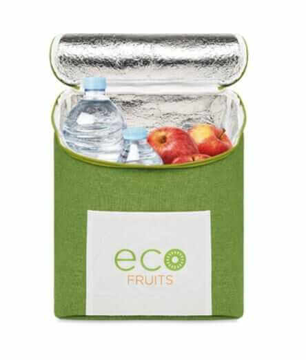 Chladící taška a batoh, plnobarevně potlačitelný. Materiál: 300D PU polykanvas s 300D polyesterovou chlopní, 2 mm EPE pěna a hliníková fólie. Chlopeň je možno plnobarevně potisknout, barvu samotného těla vaku lze vyjmout z 16 Panthone odstínů a zároveň je také potlačit. Rozměry: 29x20x35 cm. Samostatně baleno v sáčku.