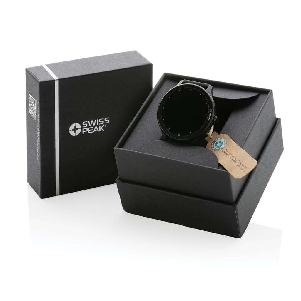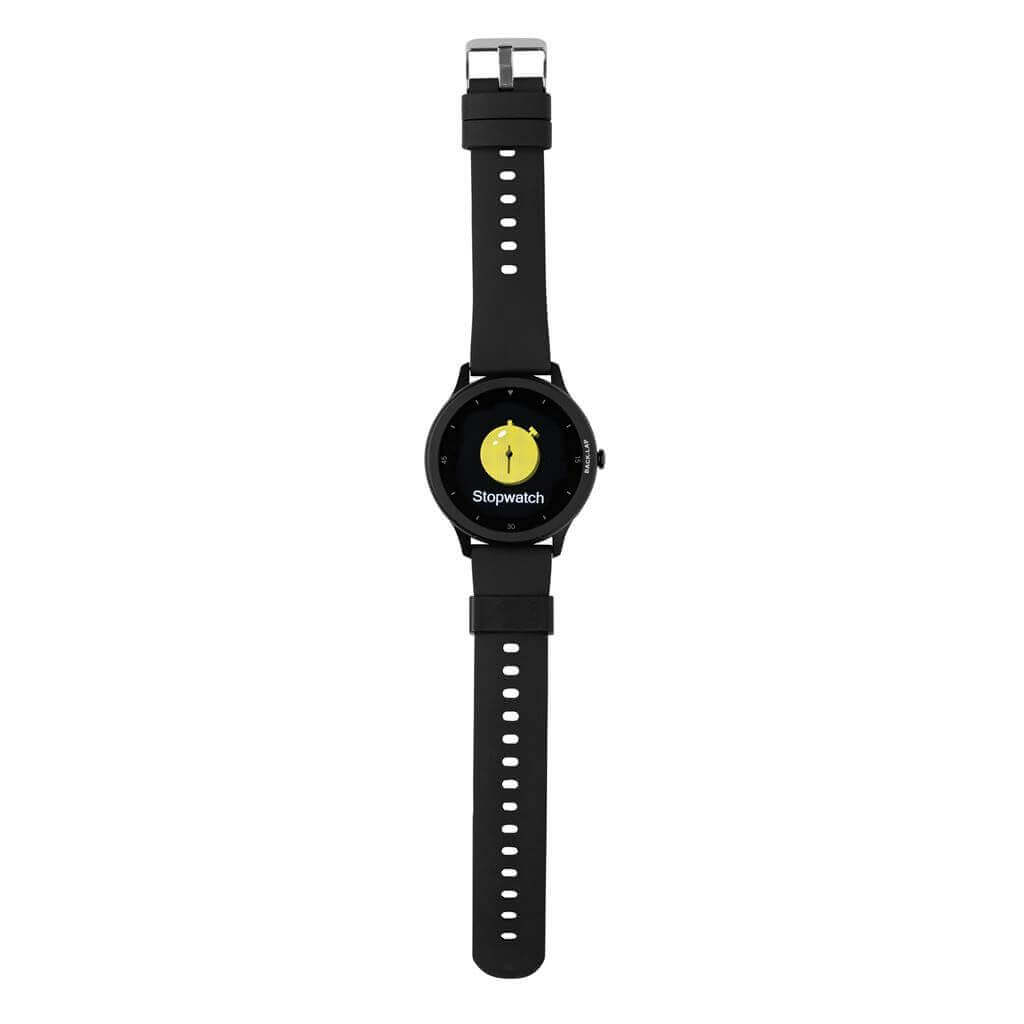 Moderní výkonné hodinky s kulatým 1,28" plně dotykovým displejem s vysokým rozlišením. Vyrobené z RCS recyklovaného TPU (pásek) a kovu (rám hodinek). RCS (Recycled Claim Standard) je globální standard, který umožňuje ověřit použití recyklovaného materiálu v produktu napříč celým dodavatelským řetězcem. Celkový podíl recyklátu dle váhy produktu: 23 %. Funkce zahrnují: sledování spánku, krokoměr, měření vzdálenosti, počítání spálených kalorií, měření srdečního tepu, krevního tlaku, Multi-sport režim (24 sportů), budík, kalendář, telefonování, notifikace: SMS, Facebook, Skype, WhatsApp a další. Integrovaný mikrofon pro telefonování. Kompatibilní s iOS 8.0 a výše a Android 4.4 a výše skrze BT 5.0. Pohotovostní režim: 15 dnů, pracovní režim: 5 dnů. Voděodolnost IPX68. Včetně nabíječky na klipu. Baleno v FSC® kraftové dárkové krabičce. Produkt i příslušenství bez PVC. 1 baterie typu Li-poly súčasťou balenia.