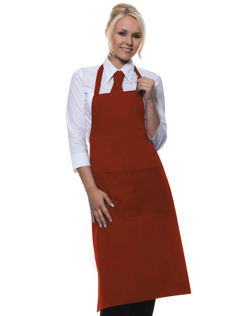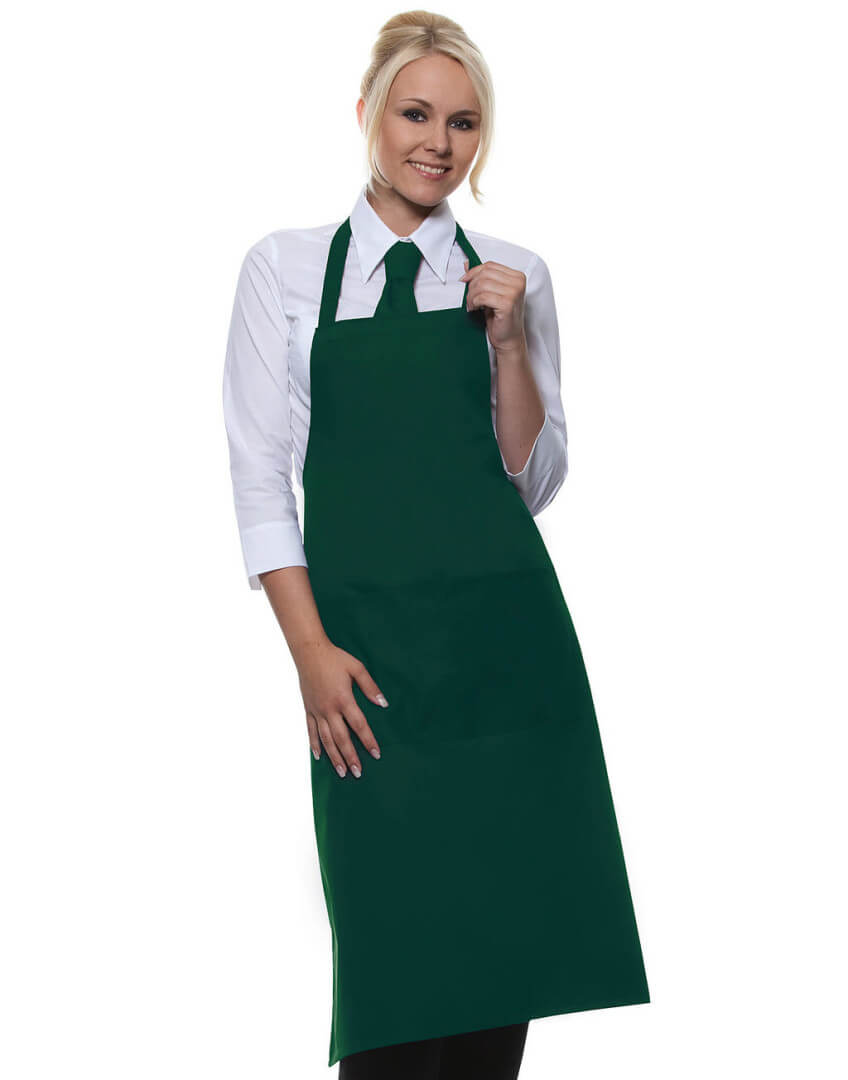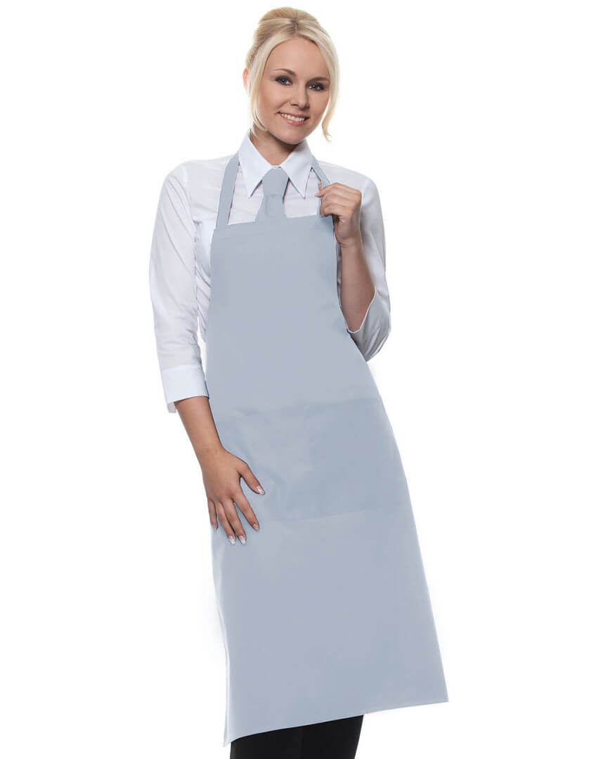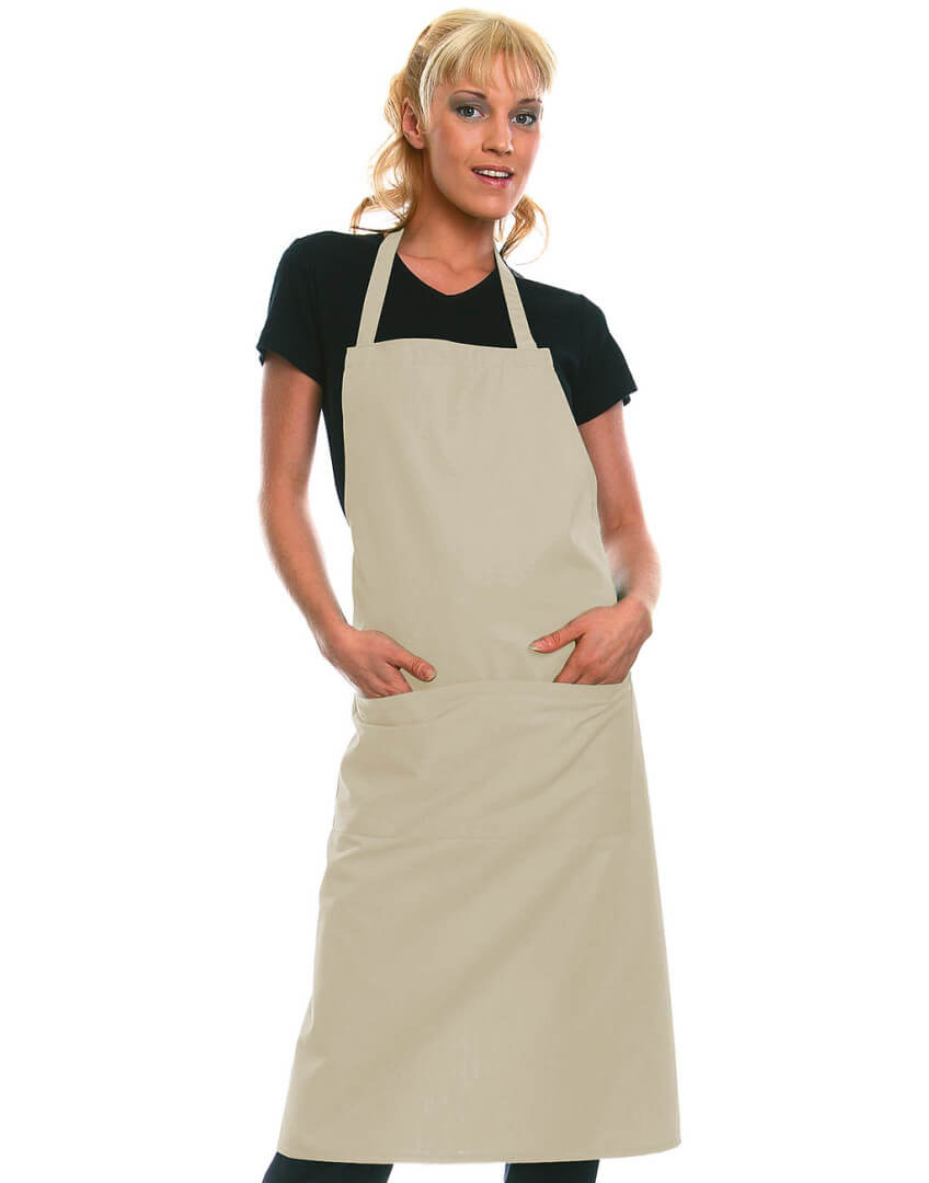 ·215 g/m² ·65% polyester, 35% předepraná kvalitní bavlna ·pevný pásek ·pásek u krku: 60 cm ·kapsa s 2 přihrádkami ·vhodné pro průmyslové praní ·lze prát až na 95°C ·trvanlivá barva, snadné ošetřování ·rozměry: 75 x 95 cm