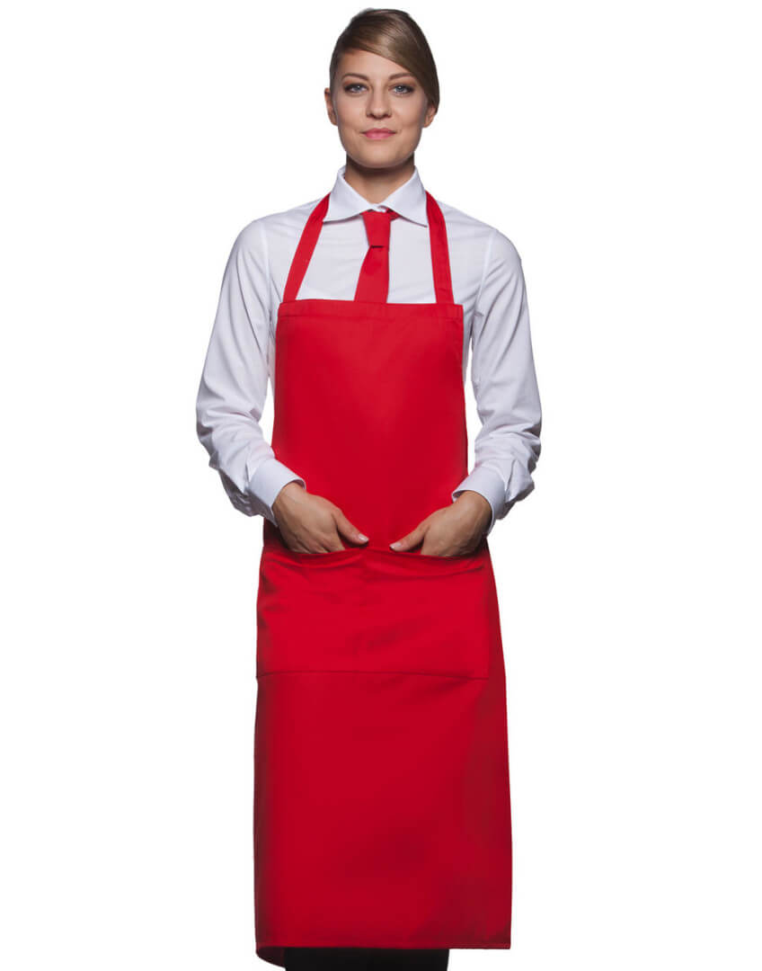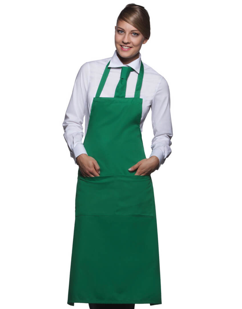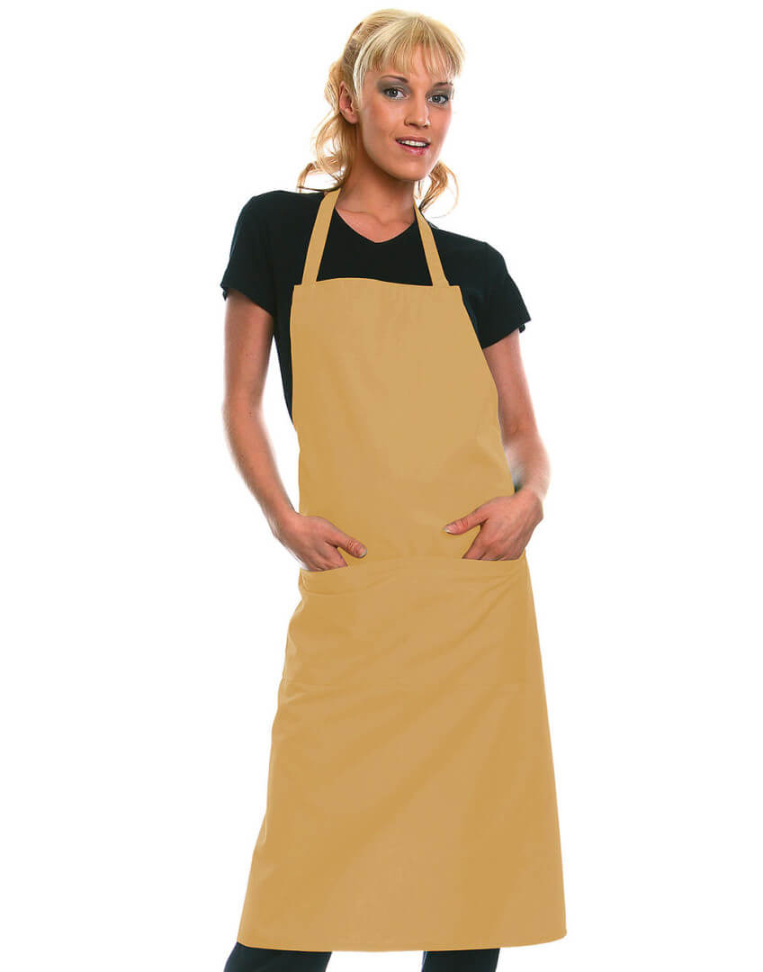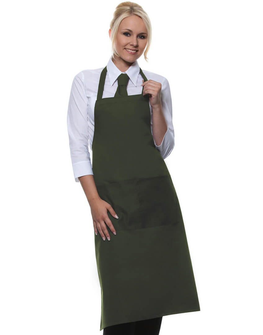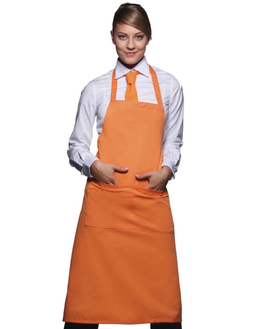 ·215 g/m² ·65% polyester, 35% předepraná kvalitní bavlna ·pevný pásek ·pásek u krku: 60 cm ·kapsa s 2 přihrádkami ·vhodné pro průmyslové praní ·lze prát až na 95°C ·trvanlivá barva, snadné ošetřování ·rozměry: 75 x 95 cm