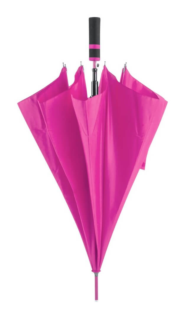 Automatický větruodolný deštník s 8 panely, barevnou kovovou konstrukcí a tyčkou, rukojeť z EVA materiálu. 190T pongee.