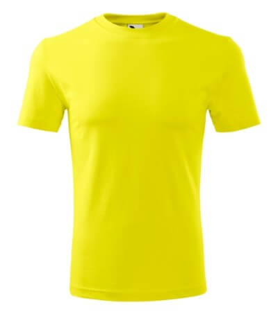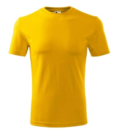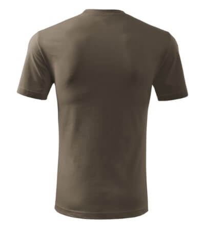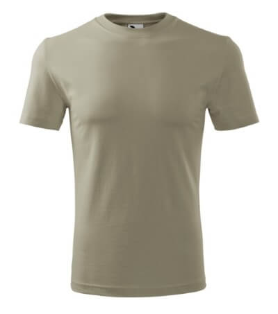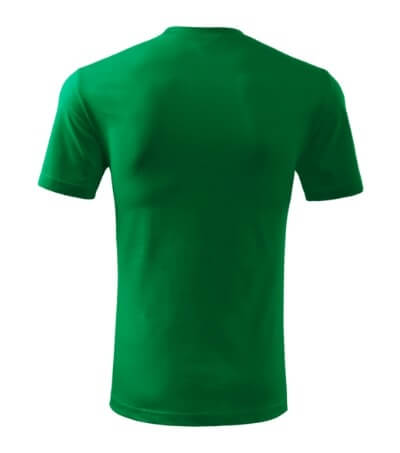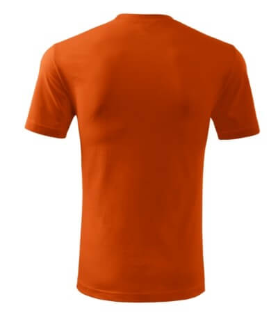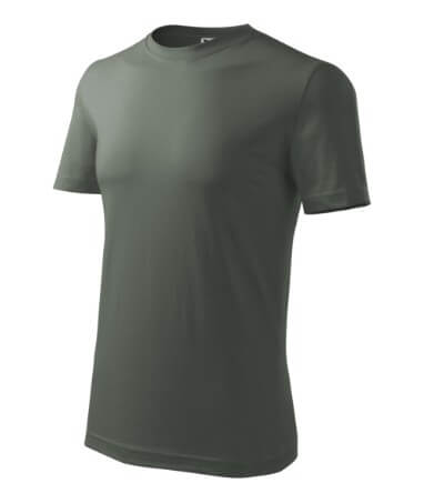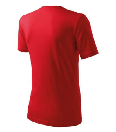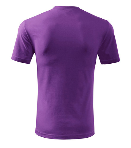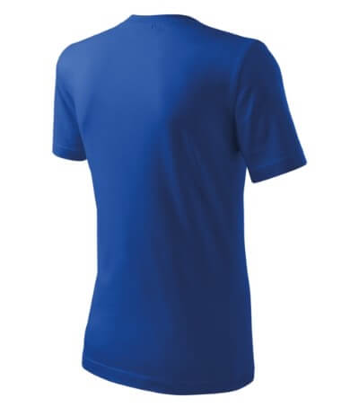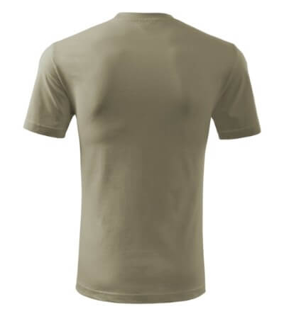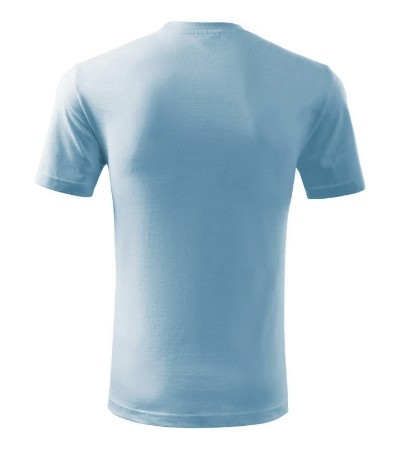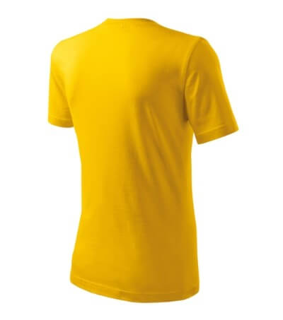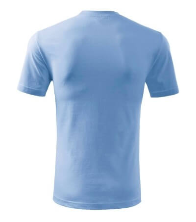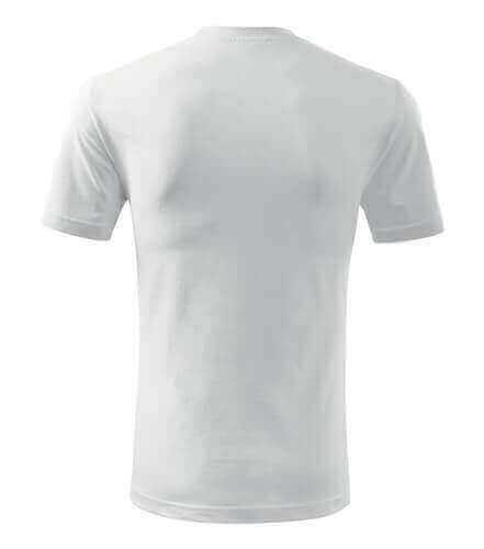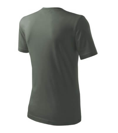 Úzký lem průkrčníku ze žebrového úpletu. Vnitřní část zadního průkrčníku začištěná tkanou páskou. Zpevňující ramenní šev. Tubulární střih. Doplňuje dámskou a dětskou variatní trička Classic New. Vhodné pro potisk.