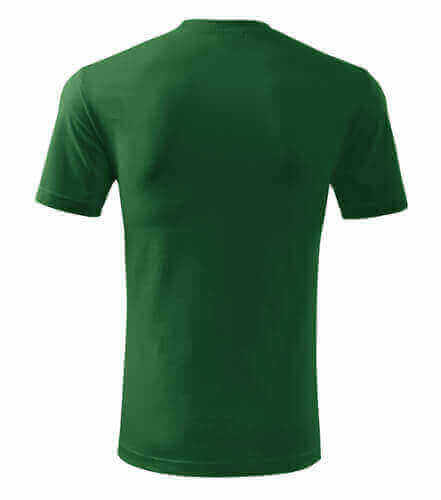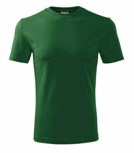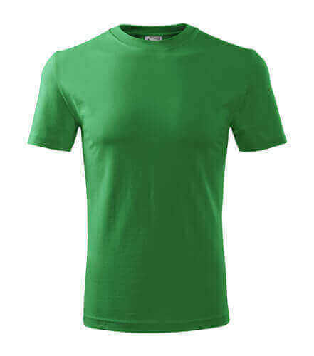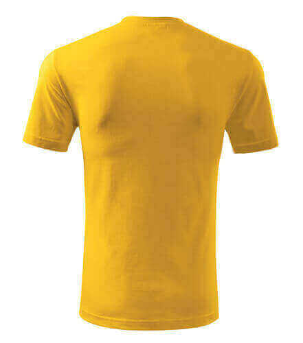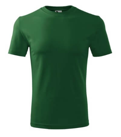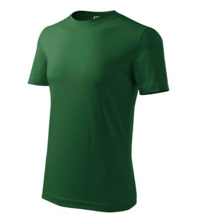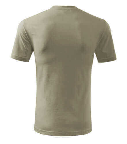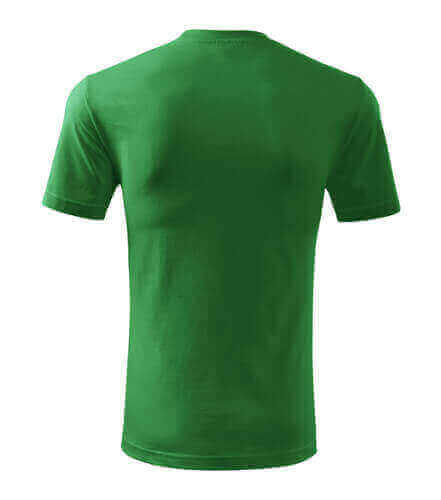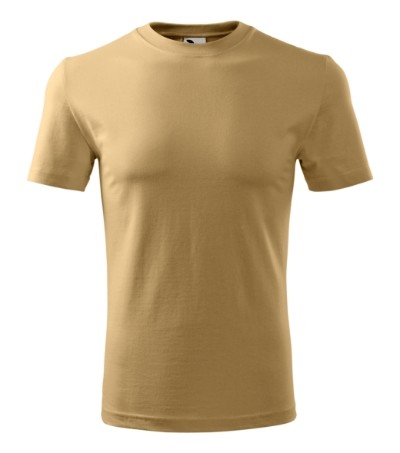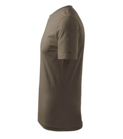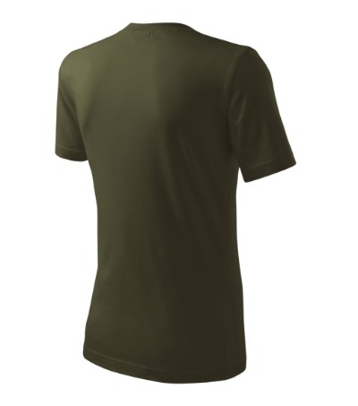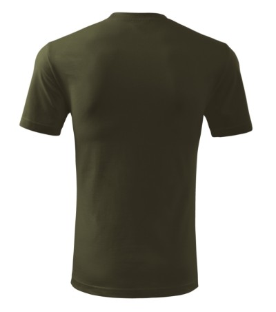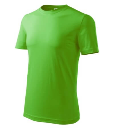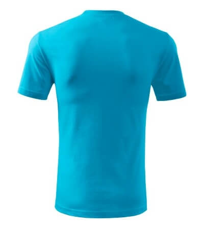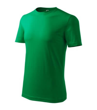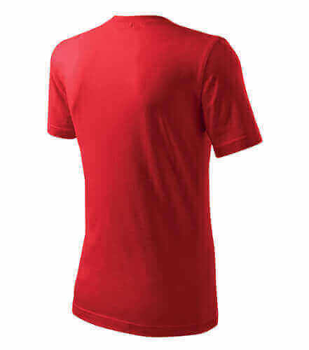 Úzký lem průkrčníku ze žebrového úpletu. Vnitřní část zadního průkrčníku začištěná tkanou páskou. Zpevňující ramenní šev. Tubulární střih. Doplňuje dámskou a dětskou variatní trička Classic New. Vhodné pro potisk.