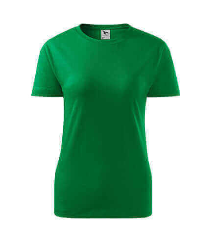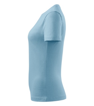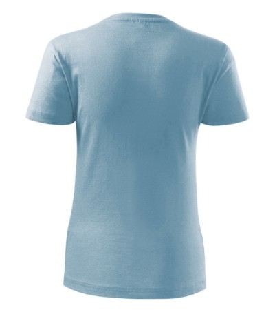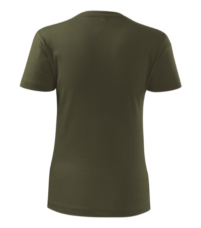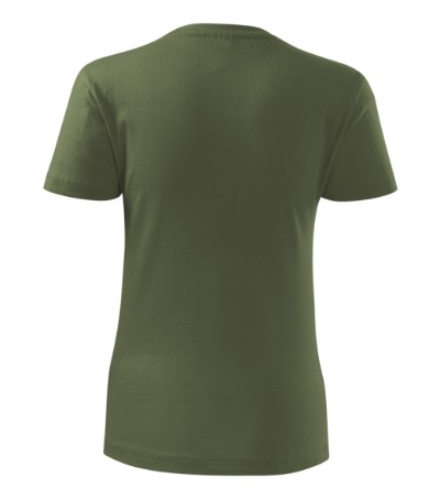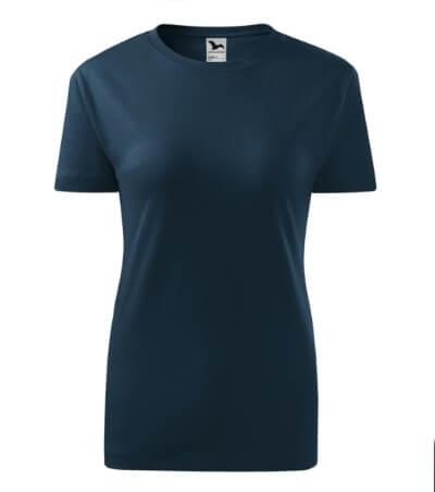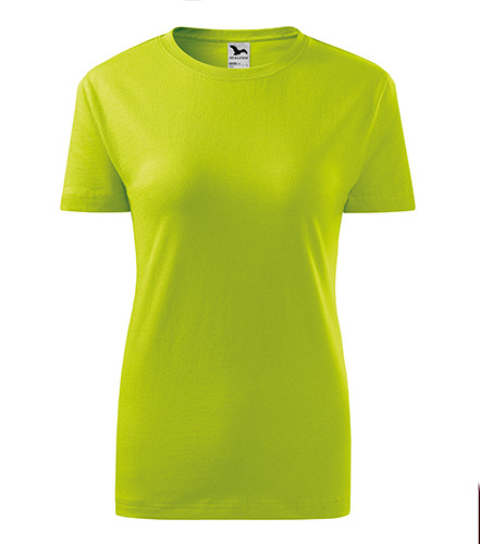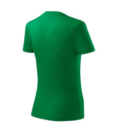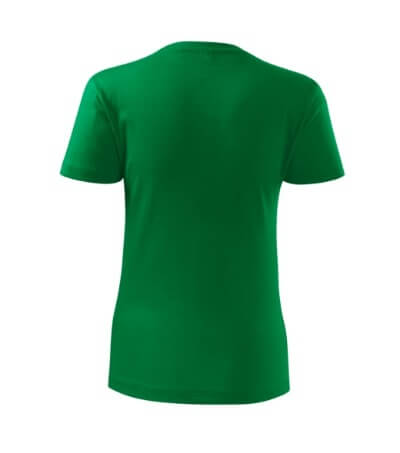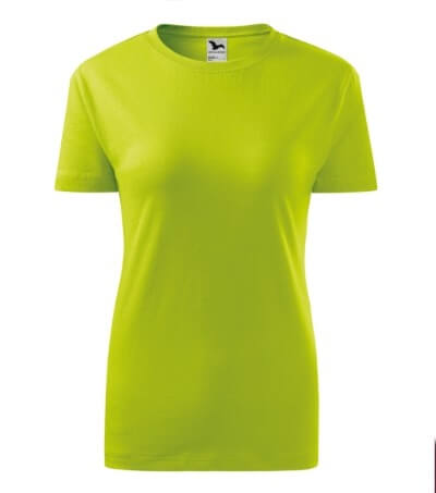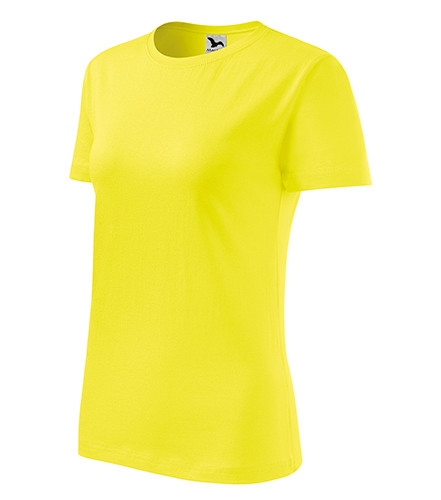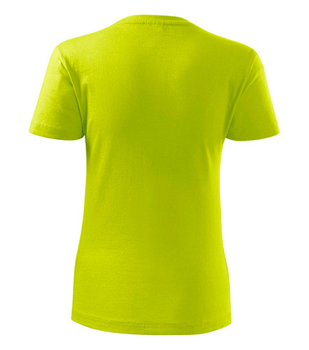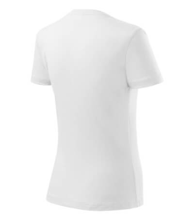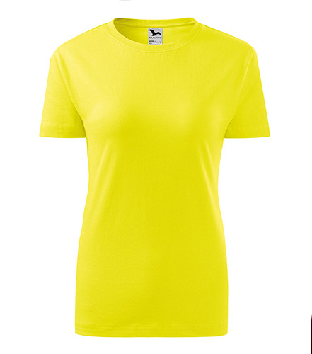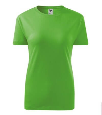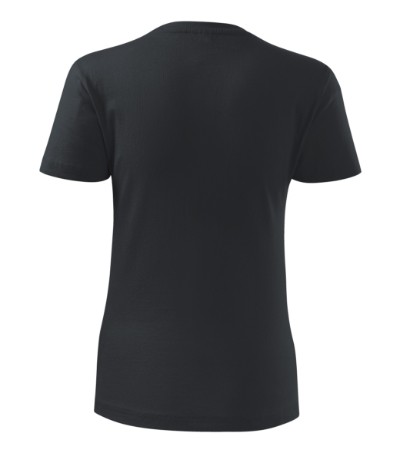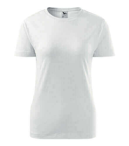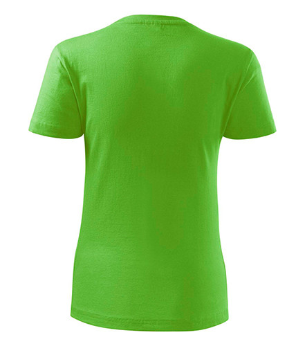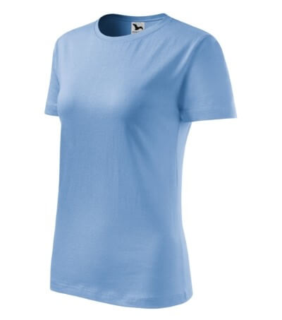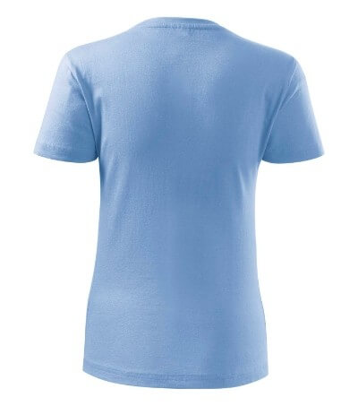 Kvalitní dámské tričko nižší gramáže. Zúžený střih zvýrazňující dámskou siluetu. Úzký lem průkrčníku z žebrového úpletu. Vnitřní část zadního průkrčníku začištěna tkanou páskou. Zpevňující ramenní šev. Doplňuje pánskou a dětskou variatnu trička Classic New. Vhodné na potisk.