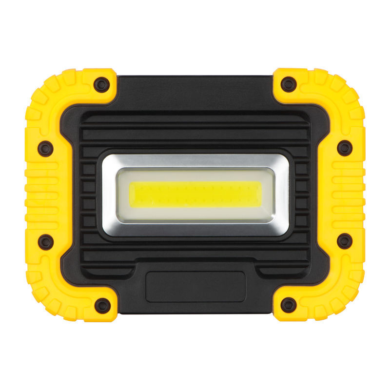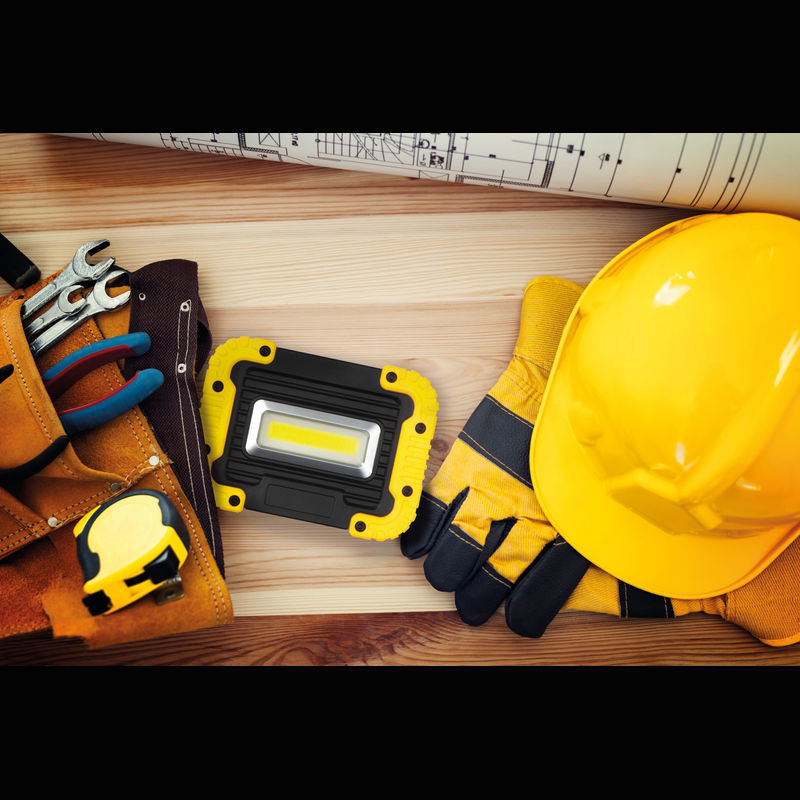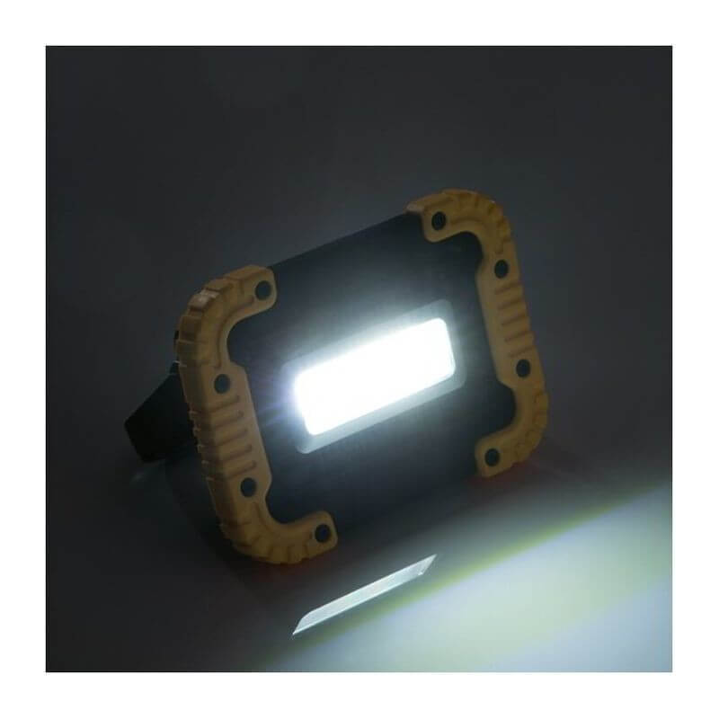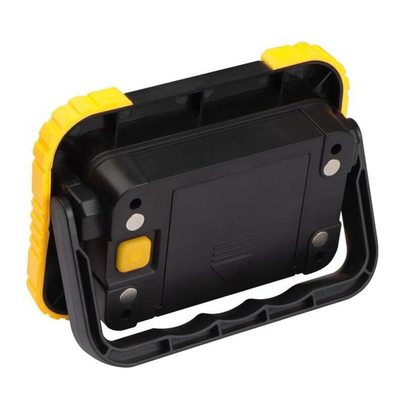 COB lampa vhodná na stavby, či k jiným pracovním činnostem. 10 W, 3 stupně svícení (stálé světlo, SOS a blikající světlo), stojan pro stabilizaci a uchopení. Způsob potisku tampónový potisk.