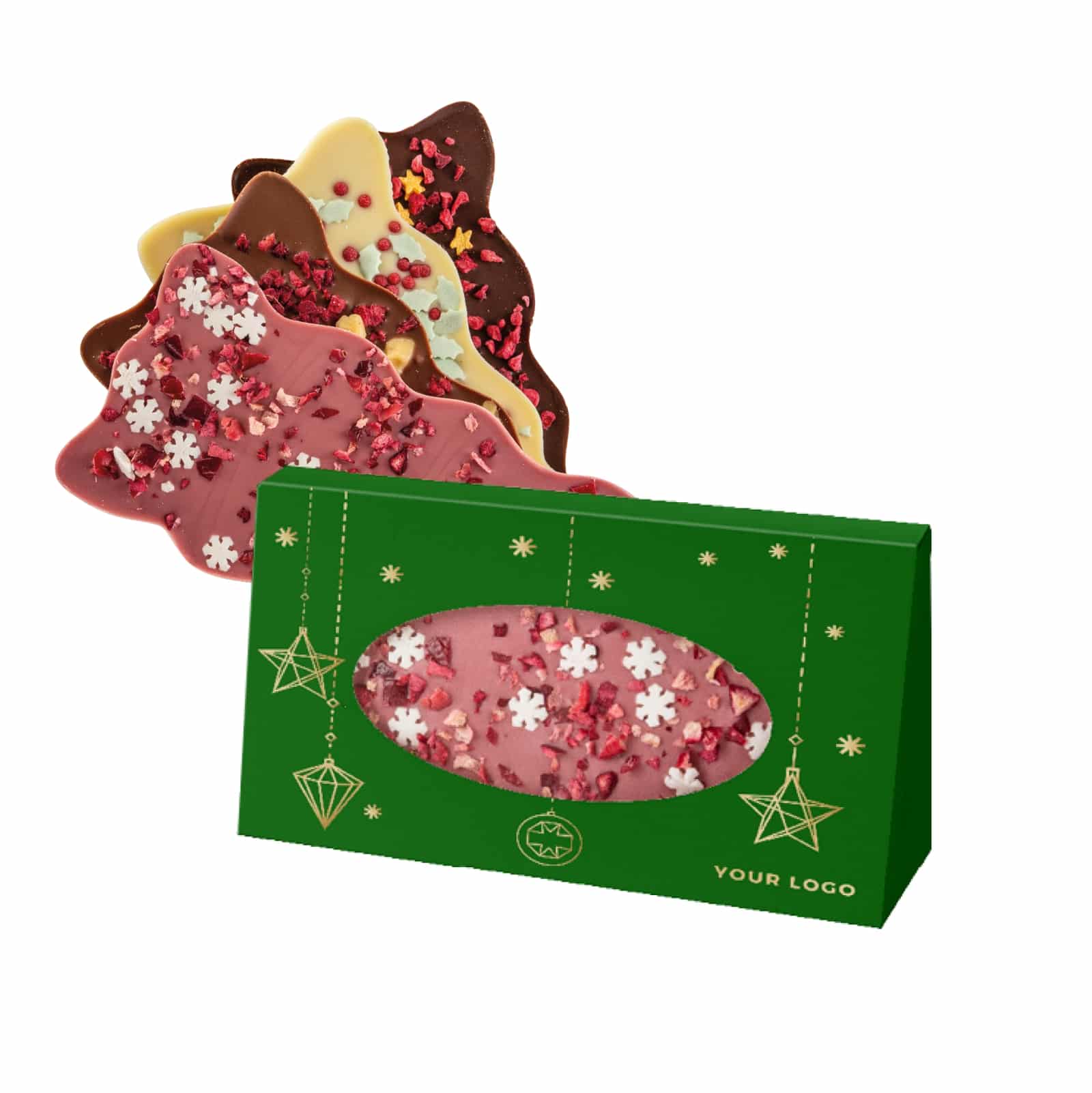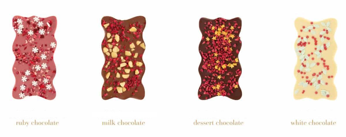 Čokoládová tabulka v netradičním tvaru v elegantním obalu. Vybírat můžete ze základní příchutě a následně drobenky. Čokolády jsou s běžnými drobenkami, vánočními i jarními květovými, které si můžete prohlédnout v naší galerii.