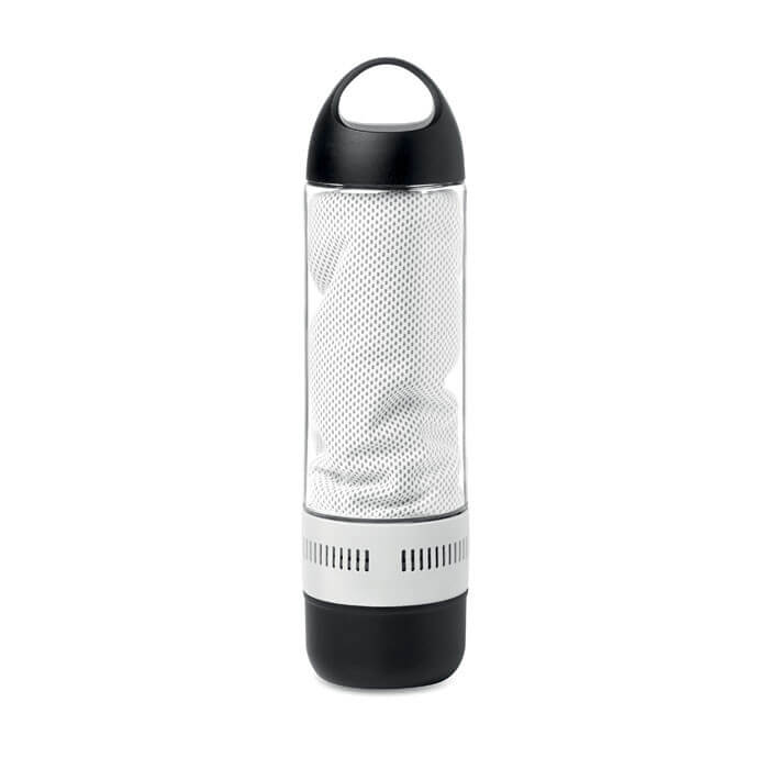 Bezdrátový reproduktor - láhev o obejmu 500 ml. Obsahuje ručník z polyesteru o velikosti 30x80 cm. Nabíjecí Li-on 300mAh baterie přiložena. Micro USB kabel přiložen. Výstup: 3W.