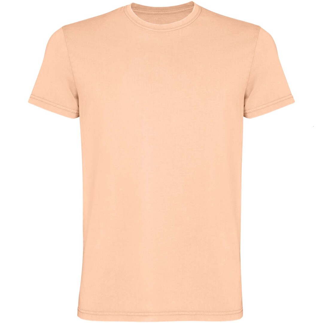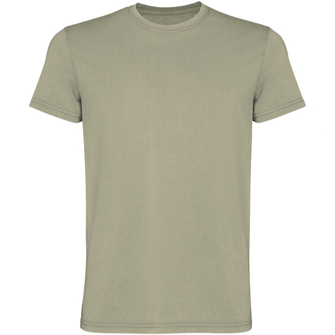 Pánské tričko s krátkým rukávem. Sepraný vzhled. Žebrovaný kulatý výstřih 1 × 1. Krycí steh v tónu látky s uhlazenou povrchovou úpravou.