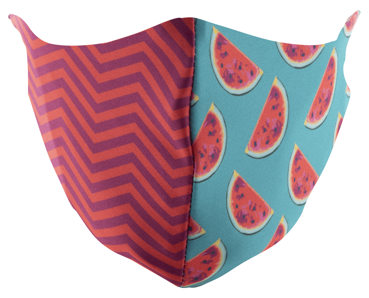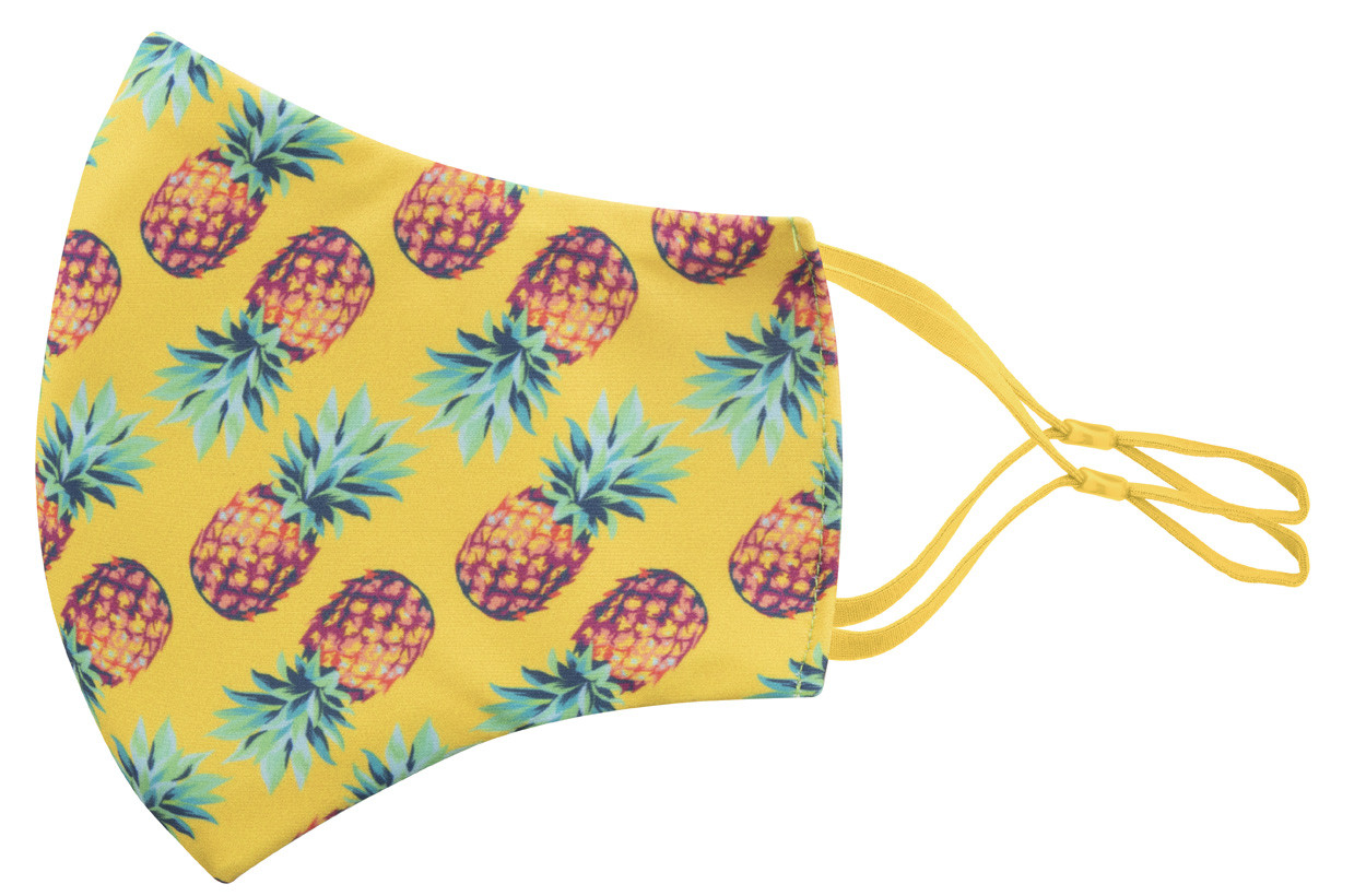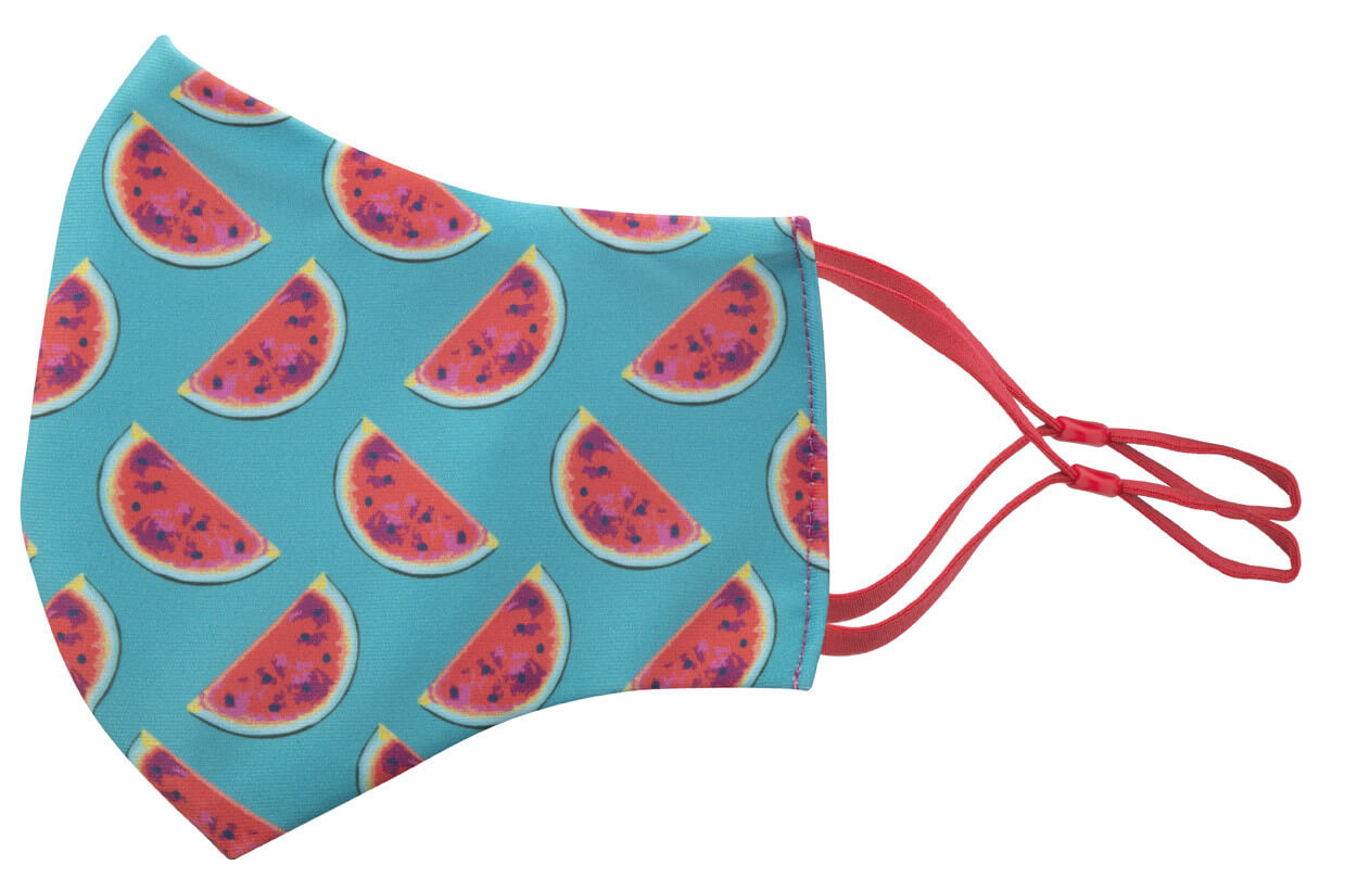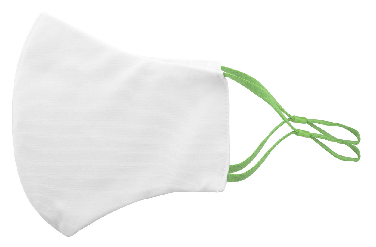 Na míru vyrobená, pratelná a opakovaně použitelná dvouvrstvá obličejová maska s nastavitelnými gumičkami za uši a s vlastním sublimačním tiskem pro dospělé. Vyrobeno ze 100% polyesteru (140 g/m2) a 100% bavlny (140 g/m²). Cena zahrnuje sublimační tisk, nezahrnuje tiskovou přípravu. Min. mn.: 100 ks. (Prevence Covidu)