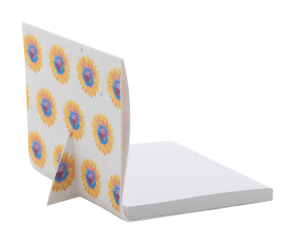 Zásobník na papírové poznámky na zakázku s vertikální hlavičkou. Obsahuje 50 listů recyklovaných papírových samolepících papírků (75×75 mm). Cena zahrnuje plnobarevný potisk držáku, nezahrnuje tiskovou přípravu. Min. mn.: 100 ks. S různými semínky divokých květin.