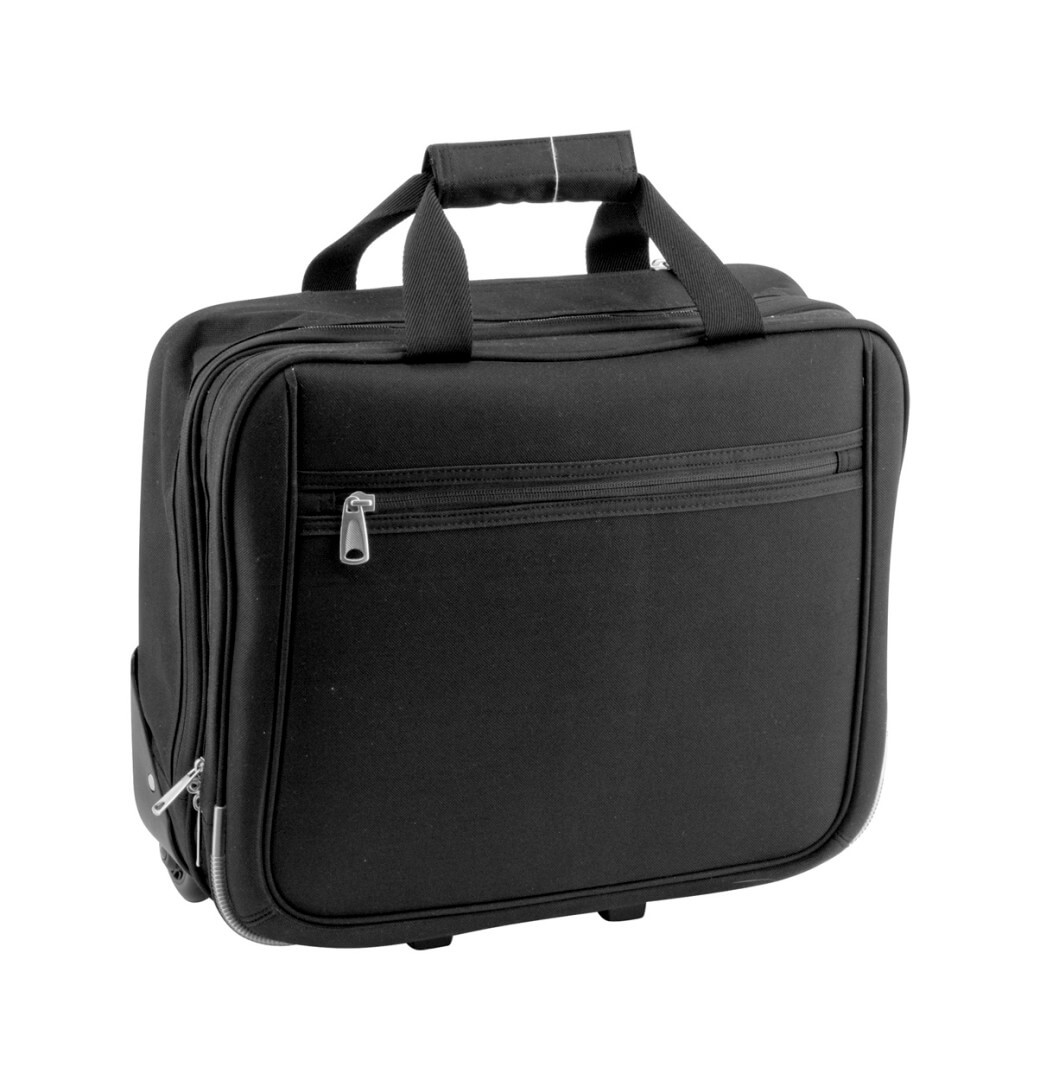 Polyesterová taška na kolečkách 600D s teleskopickou rukojetí a kapsami na zip.