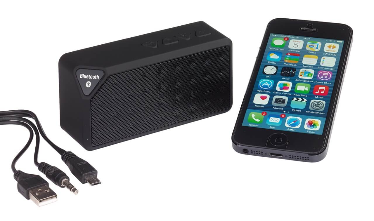 Reproduktor Bluetooth "cuboidal", hudební výkon: 3 Watt, Bluetooth verze 3.0, možnost spárování s mobilním telefonem, Bluetooth MP3 přehrávač, tablet, atd., Mohou být připojeny k externím zařízením přes 3,5 mm audio jack (délka kabelu: cca. 50 cm), slot pro micro SD kartu, hraje MP3, s hands-free funkcí, max. Rozsah: cca. 10 m, výkonná baterie, kapacita: 300mAh, vč. USB nabíjecího kabelu s micro USB konektorem (délka: cca. 50 cm), délka provozu: cca. 1 h, ovládací tlačítka na vrcholu, on / off vypínač na zadní straně, protiskluzové nožičky