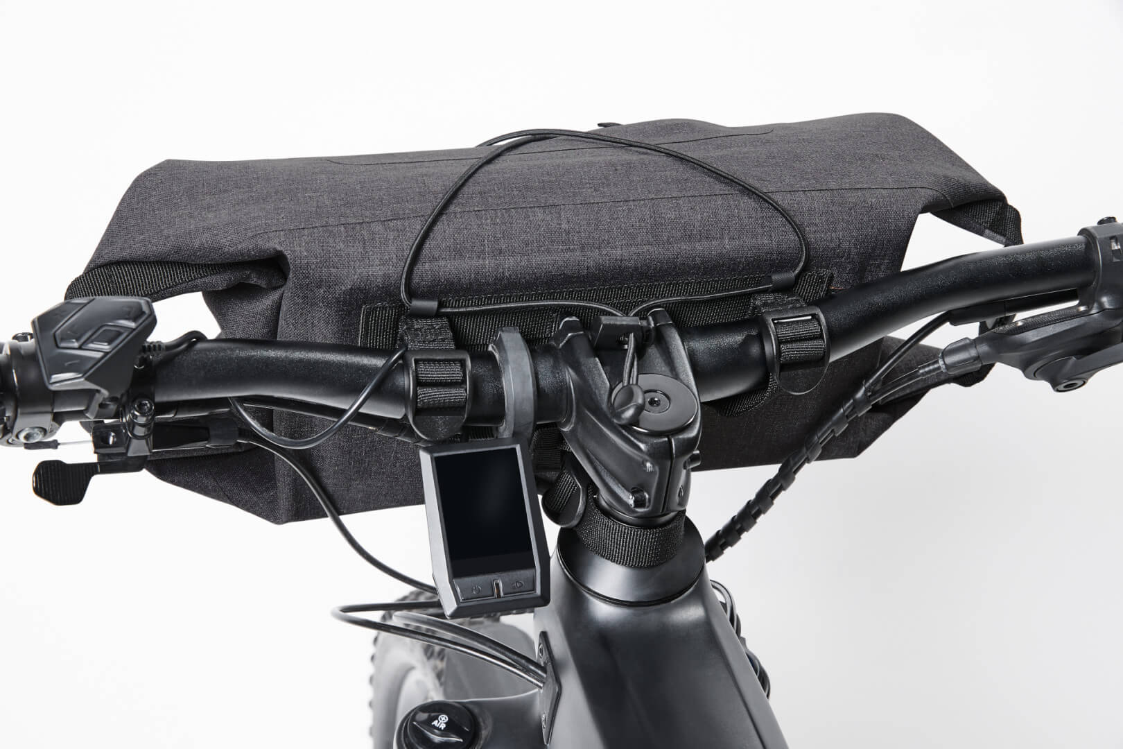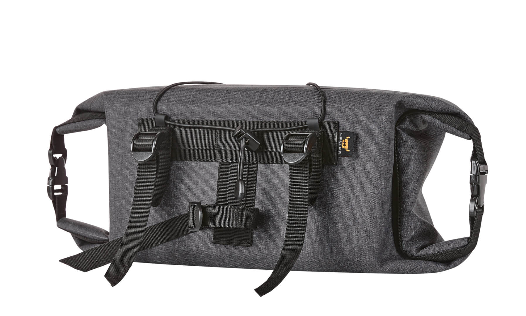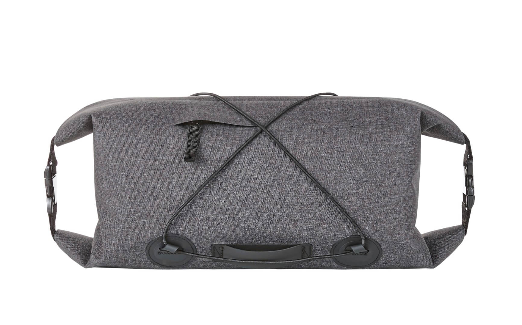 Polyester 600D | Hlavní kapsa s horním uzavíráním „roll-top“ na obou stranách pro rychlý přístup | Přední část s elastickým páskem pro uložení např. bundy, svetru atd. | Přední kapsa na zip | Svařované švy spolehlivě ochrání proti dešti a vlhku | Mechanismus pro připevnění reflektoru nebo cyklického světla | Poutka na opasek pro upevnění na řídítka kola | Bez PVC | Obsah/dekorace nejsou součástí balení