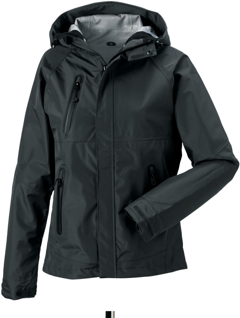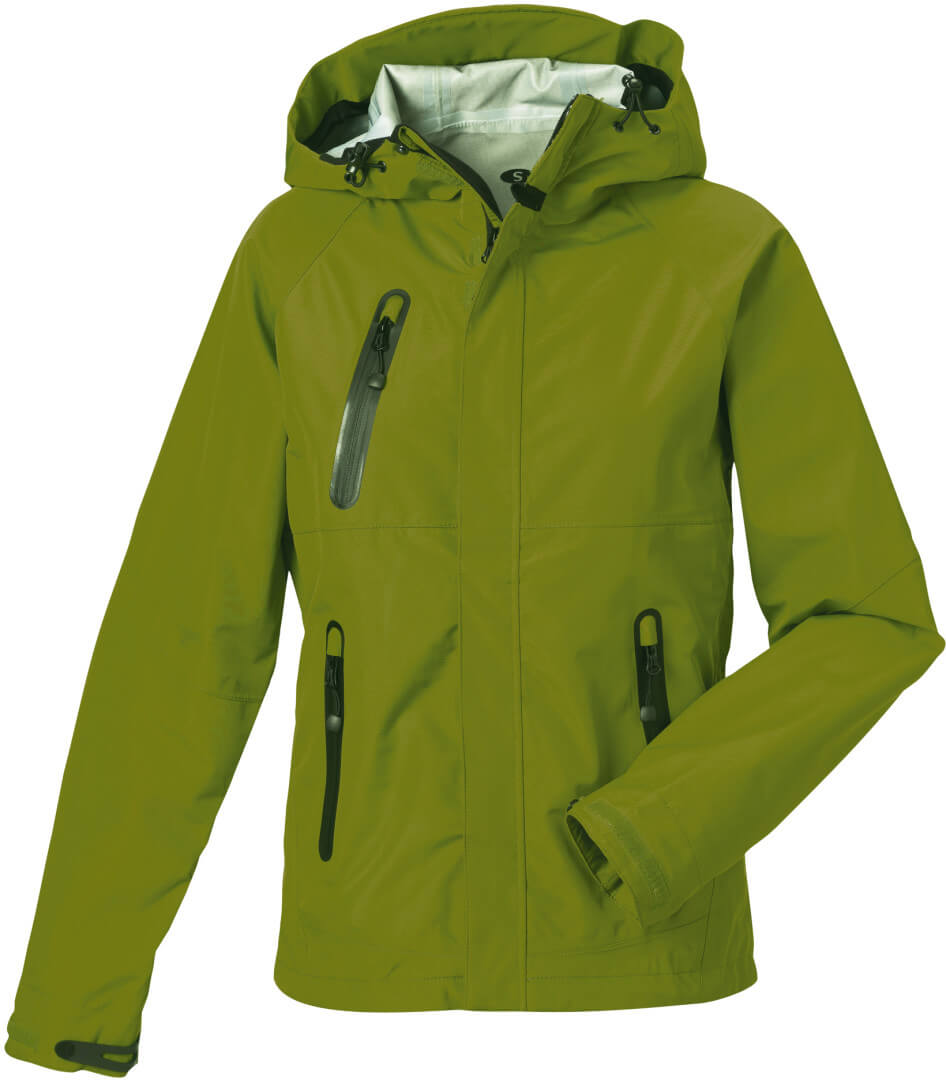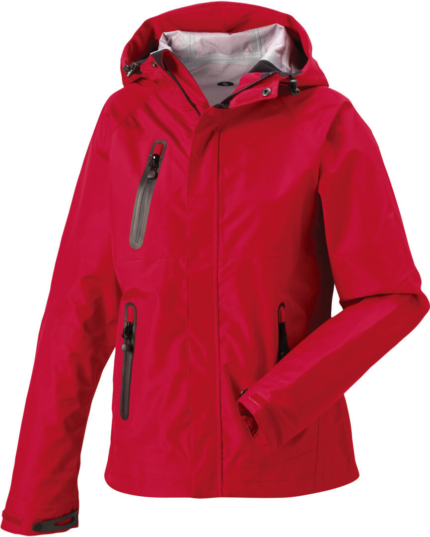 175g/m², 100% polyester Sport Technical 10000 pro ženy, nepromokavé (10.000mm), větruvzdorné, prodyšné (8.000g/m² za 24h), ergonomický tvar, zipy pod pažemi, lepené kapsy střižené laserem s nepromokavými zipy, nastavitelná kapuce