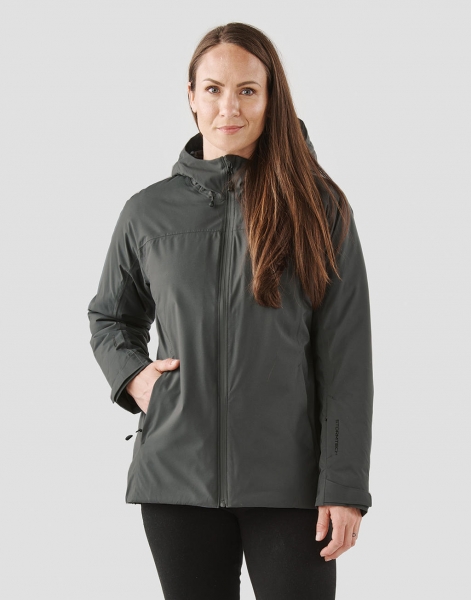 120 g/m², 100% polyester (mechanická strečová tkanina), větruodolná, nepromokavá (15 000 mm) a prodyšná (10 000 g/m² za 24 hodin), ultralehká nylonová taftová podšívka, nastavitelná kapuce s podšívkou, voděodolný zip s vnitřní légou a ochranou brady, nepromokavá náprsní kapsa na zip, kapsy na ruce na zip, vnitřní náprsní kapsa, vnitřní síťovaná kapsa, kloubové akční lokty, nastavitelný spodní lem, plně podlepené švy, střih na míru