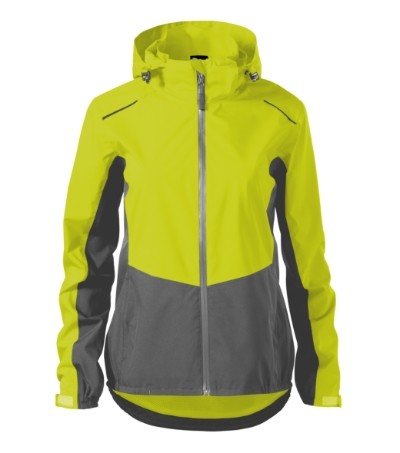 Lehký voděodolný materiál s membránou, úprava BIONIC FINISH® ECO zabraňující průniku vody, střih tvarovaný bočními díly, voděodolný zip zakončený krytkou brady, odnímatelná kapuce na stažení šňůrkou, lemy rukávů nastavitelné suchým zipem, boční kapsy s reverzním spirálovým zipem, vnitřní náprsní kapsa na suchý zip, podlepené švy, tvarovaný a mírně prodloužený zadní díl, dolní okraj stažený pruženkou v boční části, odvětrávání v zadní části, reflexní prvky.