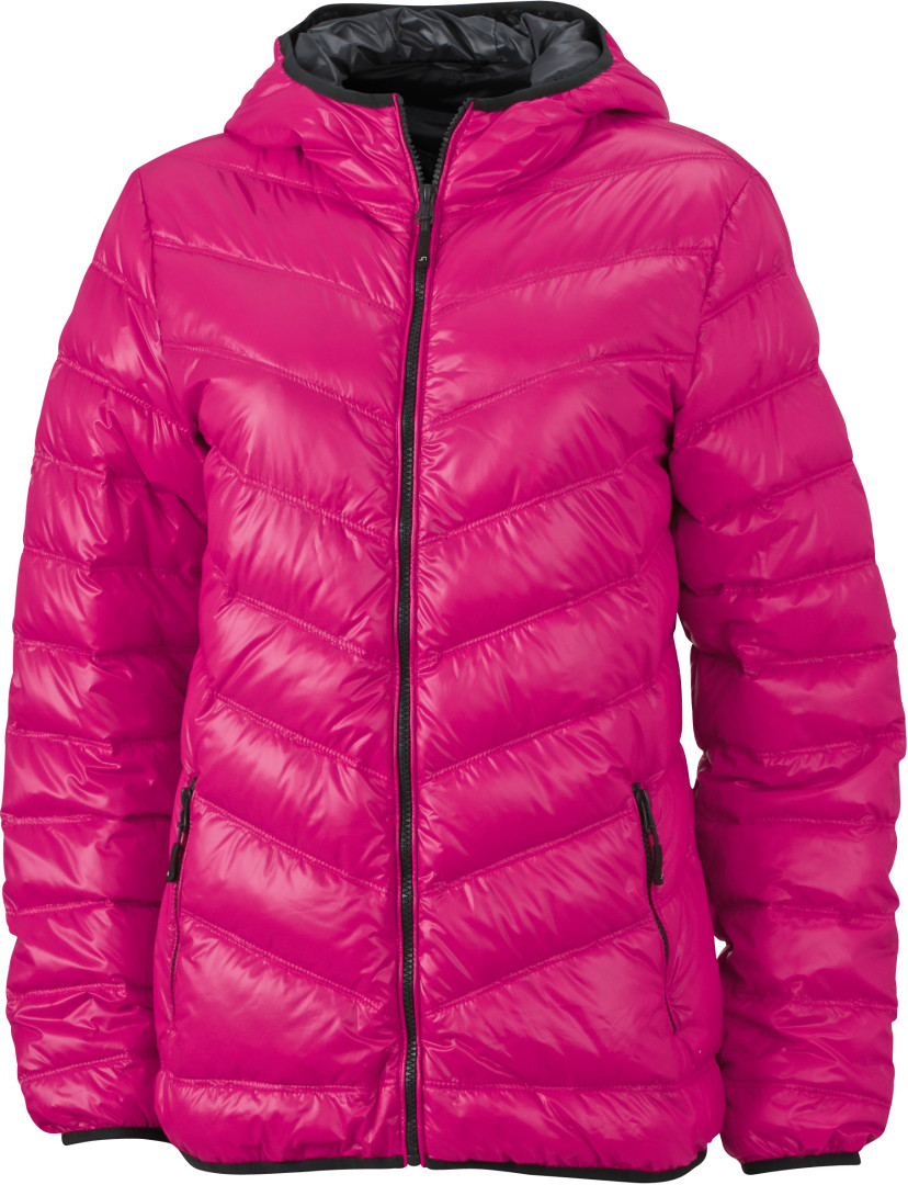 vnější a vnitřní vrstva: 100% polyamid, prostřední vrstva: 90% chmýří, 10% peří 2 vnitřní kapsy a 2 boční kapsy na zip, podšívka, vnitřek kapuce, lemy a zipy jsou v kontrastních barvách, z měkkého a lehkého materiálu, odolný vůči vodě a větru, díky svému materiálu se dá snadno uložit do tašky