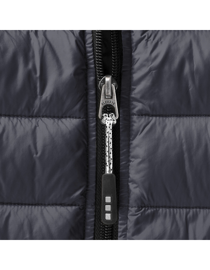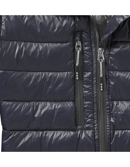 Lehká péřová bunda | Materiál odolný proti úniku peří | Vnitřní chlopeň proti větru s ochranou brady | Dámské provedení má zvýrazněný pas, který lichotí postavě | Kapsa na rukávu se zipem | Kapsa na zip na hrudi | Boční kapsy na zip | Strečové lemování na manžetách a lemu | Vpředu uprostřed zip s kontrastním páskem | Stahovač zipu se snadným úchopem (vč druhé sady v antracitové barvě) | Poutko na zavěšení | Vnější část: tkaná ze 100 % nylonu s matným vodoodpudivým povrchem, 20D | Vysoce kvalitní podšívka z 90 % prachového peří a 10 % peří | 115 g / m².