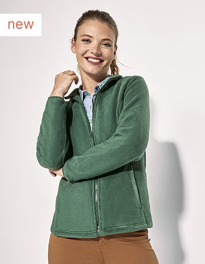 Dámská flísová bunda s vysokým límcem a barevně sladěnou zpevňovací páskou za krkem | Zip ve stejné barvě | Se stahovákem z materiálu bundy | Elastické manžety | Elastická stahovací šňůrka se zarážkou v lemu | Odtrhávací štítek.