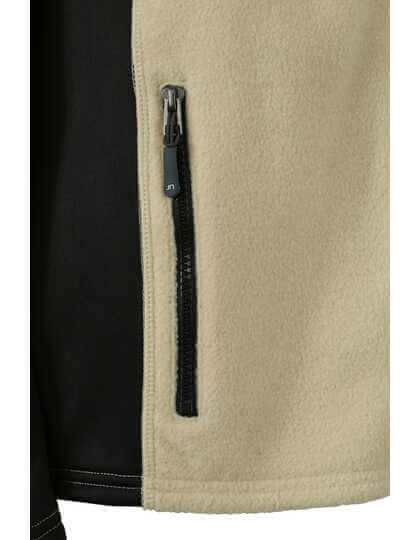 Odolná fleecová bunda ze směsi materiálu | Mikroflís se snadnou údržbou a úpravou proti žmolkům | Elastické softshellové vsadky v kontrastní barvě na rukávech a z boku | Zapínání na skrytý zip s chráničem brady | Stojáček | 2 boční kapsy a kapsa na rukávu se zapínáním na zip | Mírně vypasované