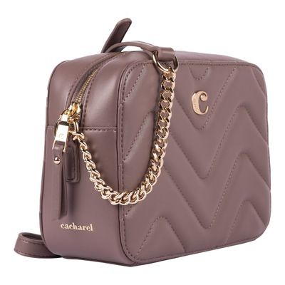 Crossbody kabelka „Odeon“ je elegantní a decentní, s prošívaným vzorem na krásné, jemně texturované veganské kůži (PU). Podpisový štítek je mírně nadrozměrný a klenutá verze ikonického loga „C“, podepsaná rytinou Cacharel. Stahovák zipu je také podepsán ikonickým logem „C“ a je vyroben z krásného pozlaceného kovu smíchaného s veganskou kůží, což dodává celému produktu krásný ženský nádech. Taška, která je kompaktní, ale praktická, s vnitřním oddělením na zip, se bude perfektně nosit všude.