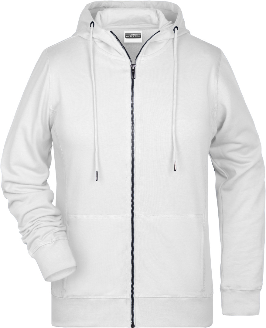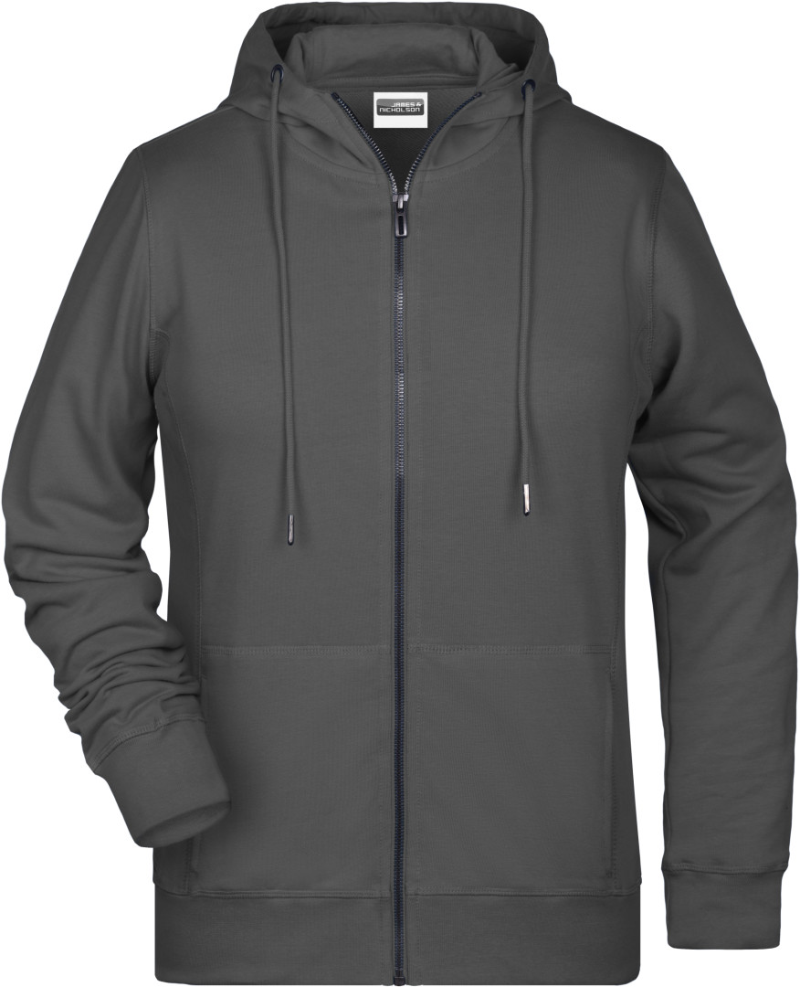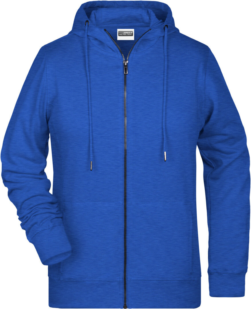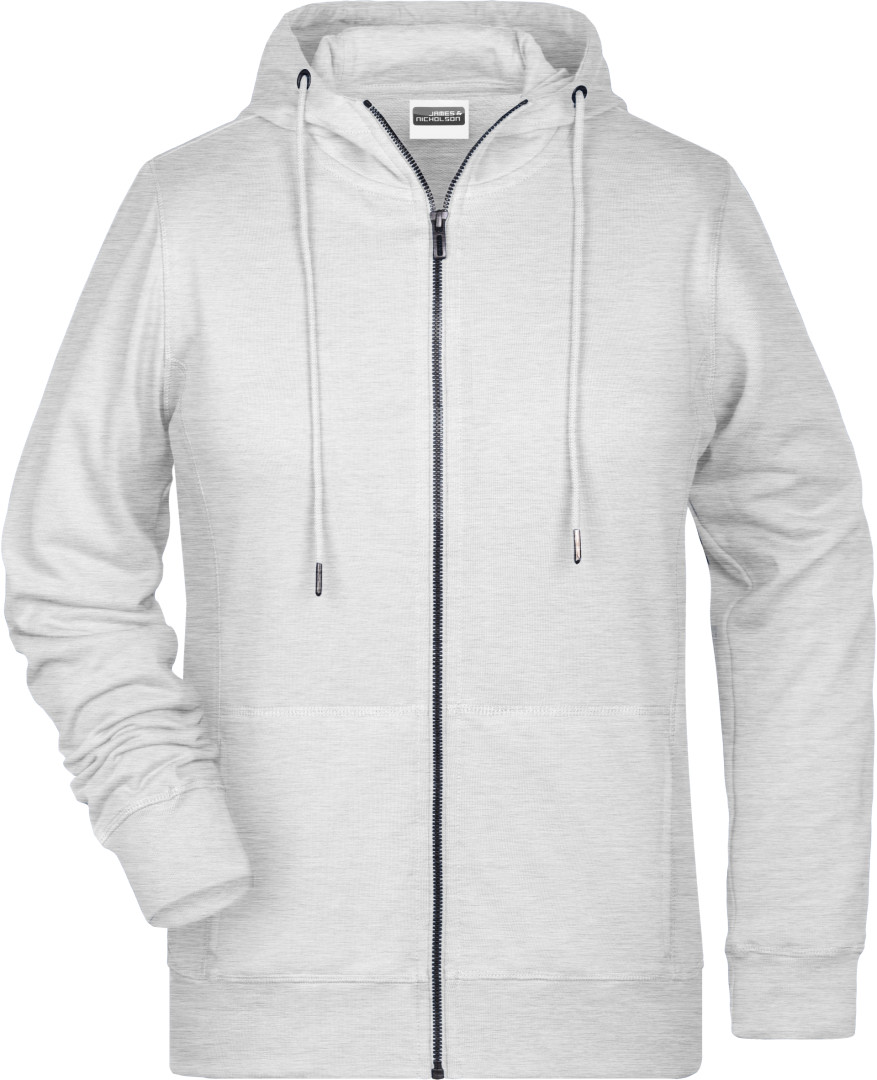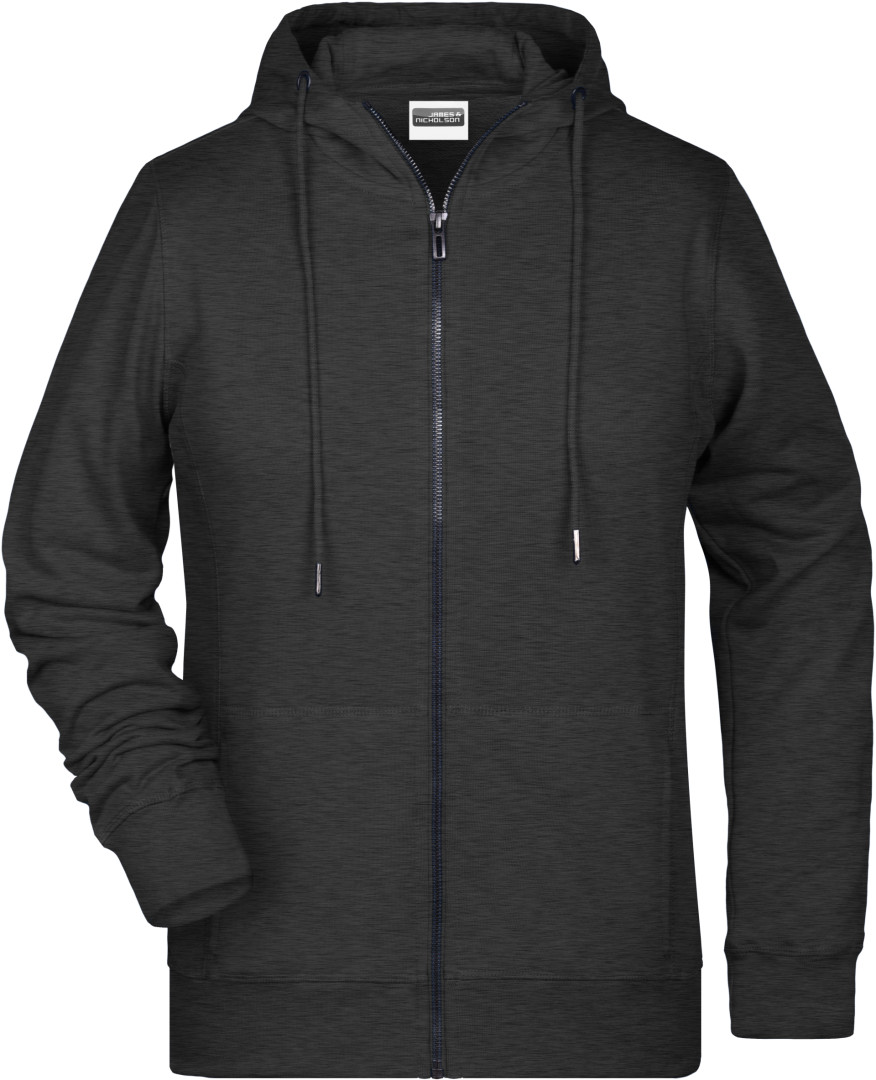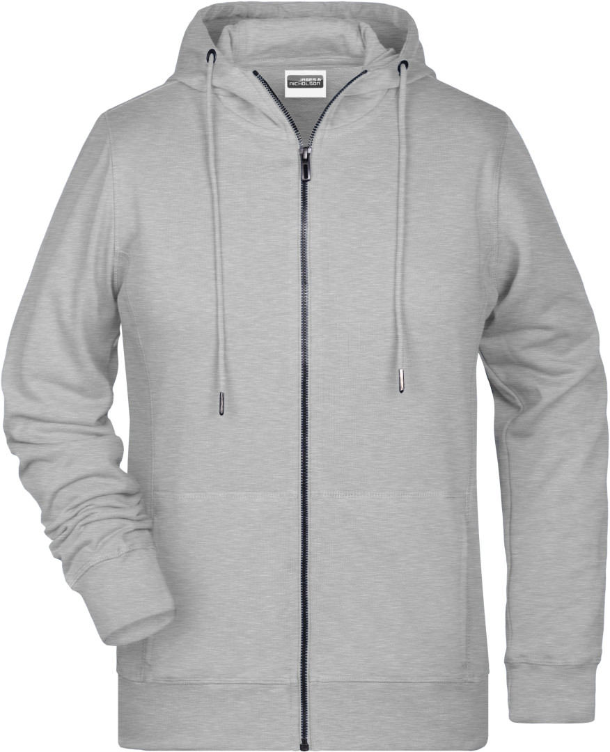 300g/m², 85% česaná Bio bavlna předepraná proti srážení, 15% polyester, french terry Lehce projmutý střih, boční švy v přední části, dvouvrstvá kapuce se stahovací šňůrkou, manžety s elastenem, klokaní kapsa, YKK zip, uvnitř zdrsněná , odtrhávací štítek