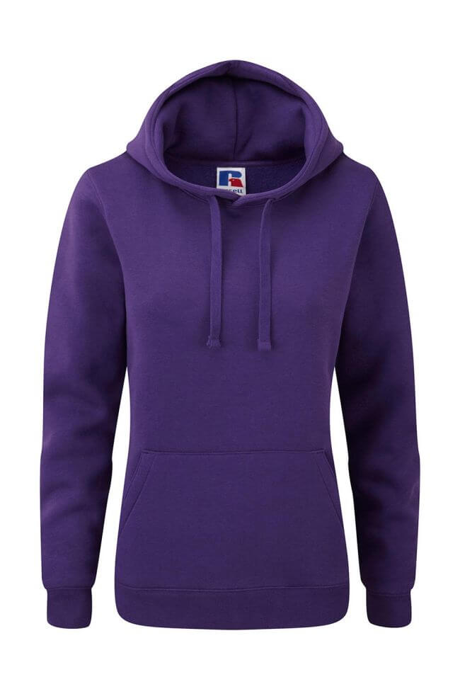 ·280 g/m2 ·80% česaná bavlna ring spun, 20% polyester (třívrstvá látka) ·dvouvrstvá kapuce ·ploché stahovací šňůrky ·výztužná páska páska za krkem s nápletem rybí kostra ·úzší v ramenou s bočními švy ·vývod na sluchátka ·klokaní kapsa ·průramky, manžety a lem se skrytými švy ·moderní dámský střih