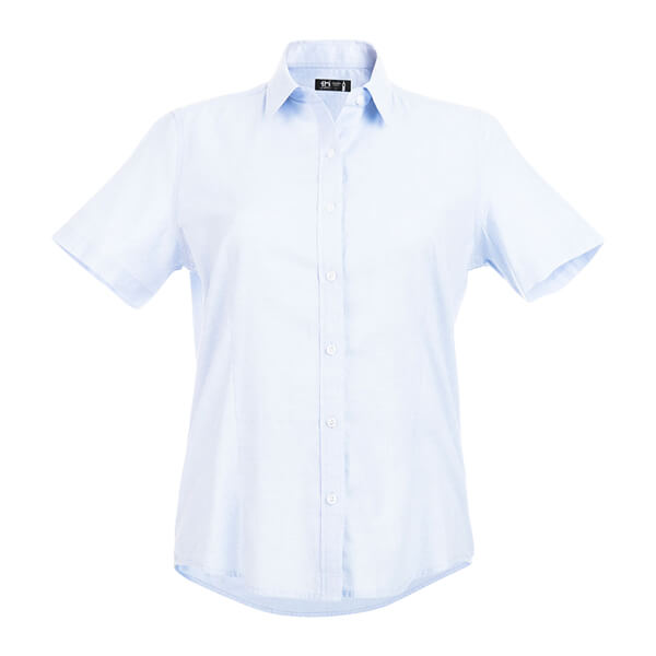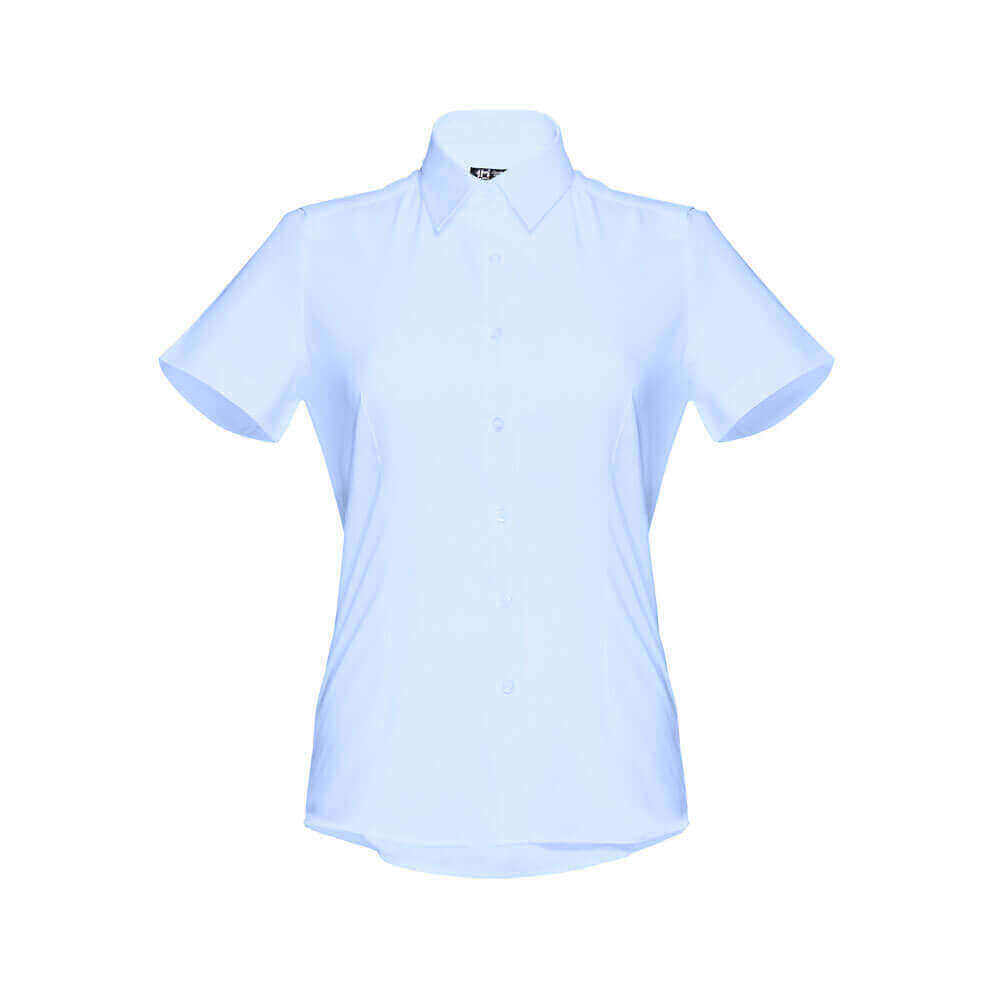 Dámská oxfordská košile, 70% bavlna a 30% polyester (130 g/m²). Krátký rukáv. Přiléhavý střih. Léga se 7 perlovými knoflíky. 2 záševky na zadním a předním dílu.