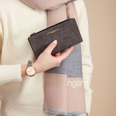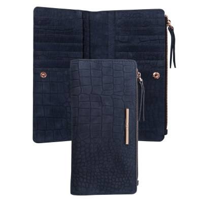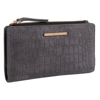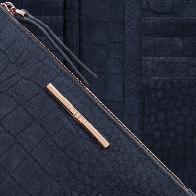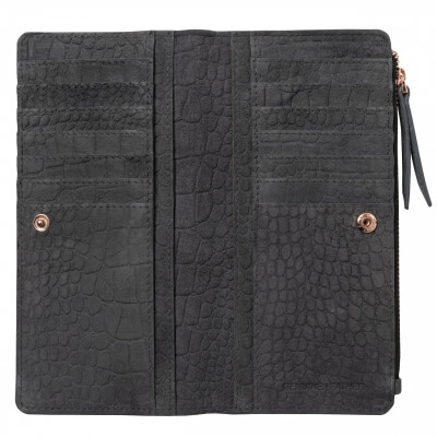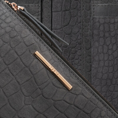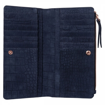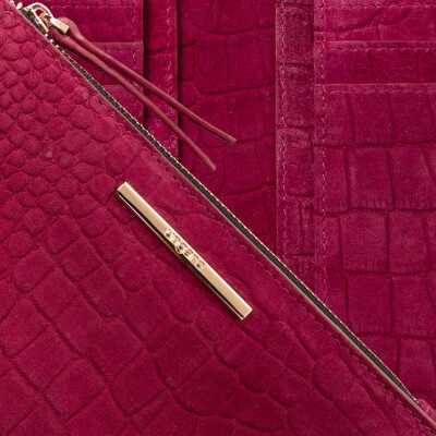 Peněženka Ungaro "Giada" je vyrobena ze semišové kůže s potiskem vzoru inspirovaného krokodýlí kůží. Charakteristický kovový štítek je v růžovo-zlaté barvě a dodává celému produktu ženský a luxusní nádech. Položka má 7 přihrádek na karty na každé straně, jakož i větší přihrádky na poznámky a dokumenty. Má tak velkou přihrádku na zip.