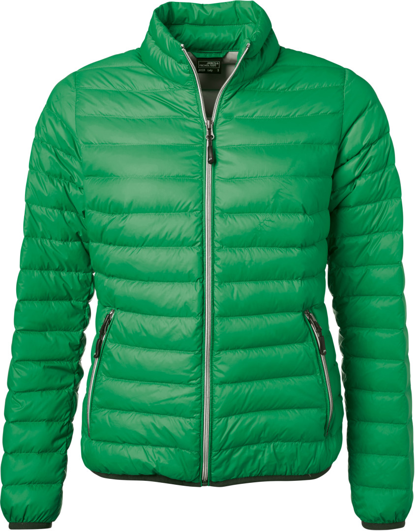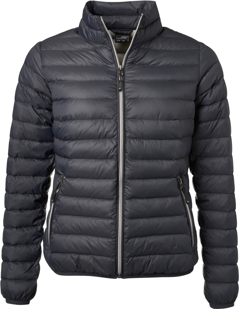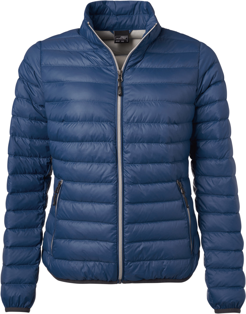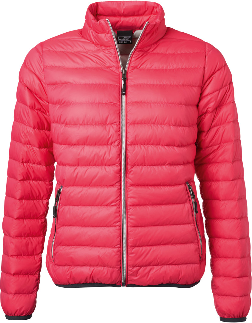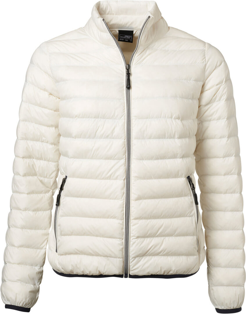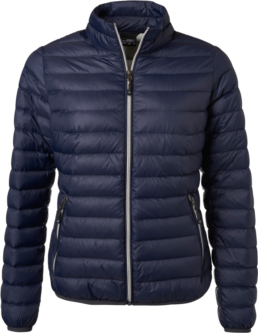 vnější materiál: 100% polyamid, podšívka: 100% polyamid, polstrování: 90% peří, 10% prachové peří lehce větru a vodě odolný materiál, vnitřní podšívka a zipy v kontrastní barvě, kontrastní barva na rukávu a lemu, 2 boční kapsy na zip, zúžený střih