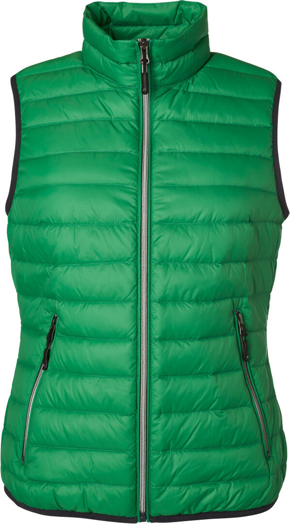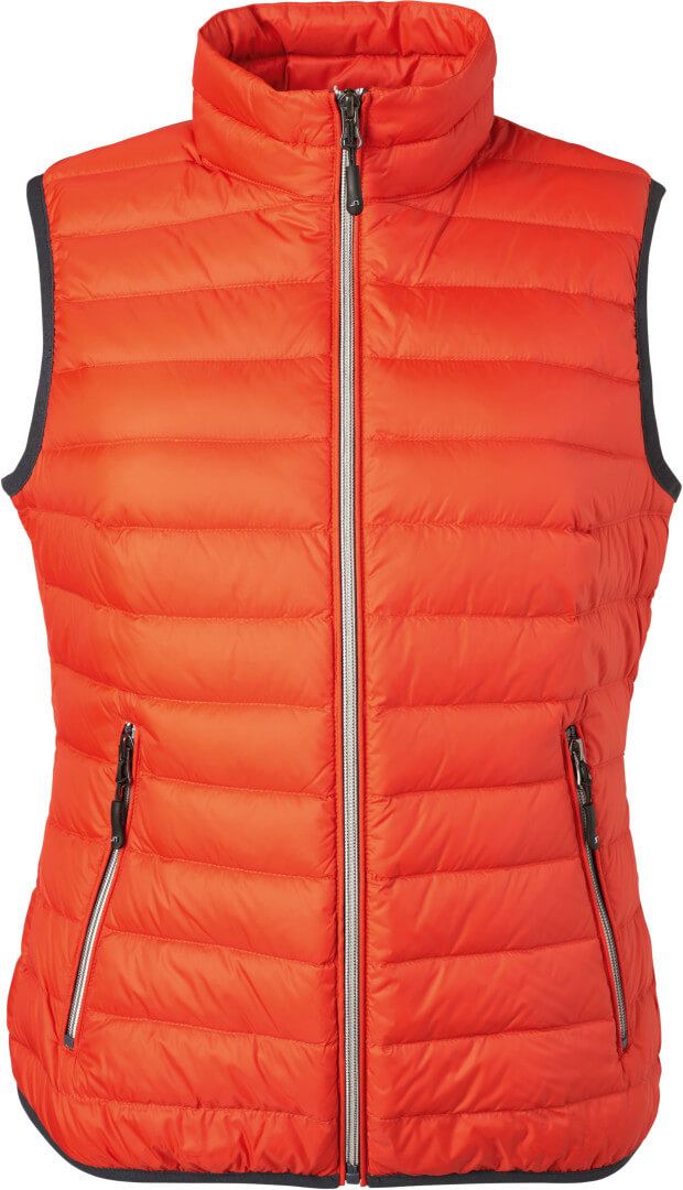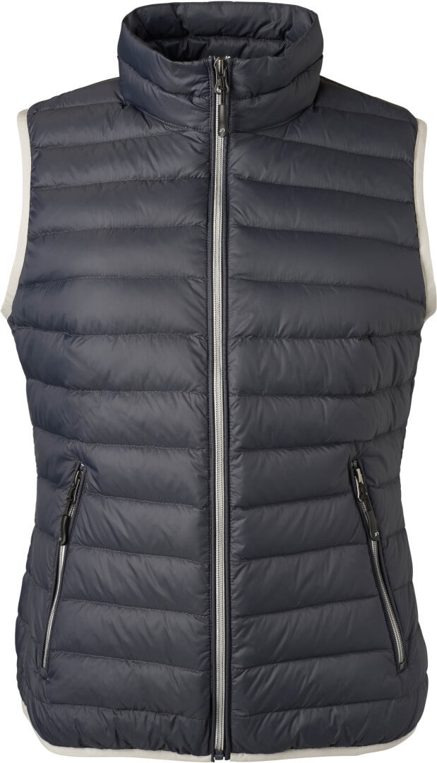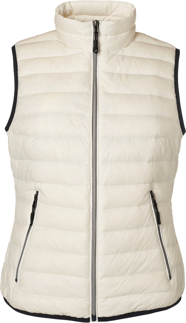 vnější materiál: 100% polyamid, podšívka: 100% polyamid, polstrování: 90% peří, 10% prachové peří lehce větru a vodě odolný materiál, vnitřní podšívka a zipy v kontrastní barvě, kontrastní barva na rukávu a lemu, 2 boční kapsy na zip, zúžený střih