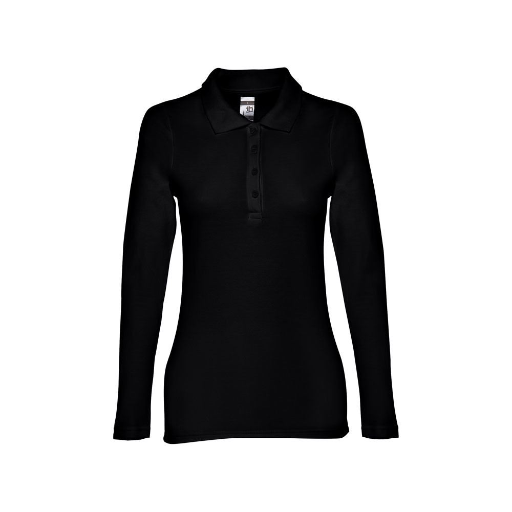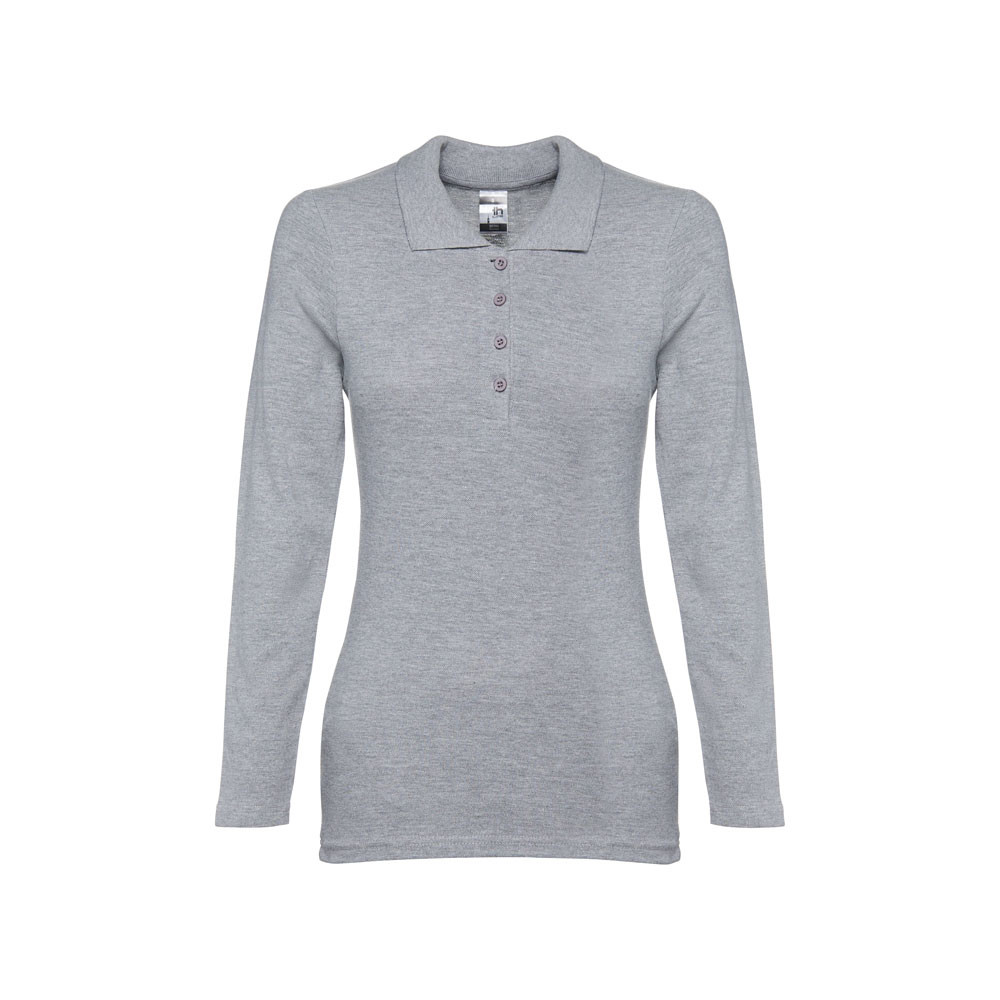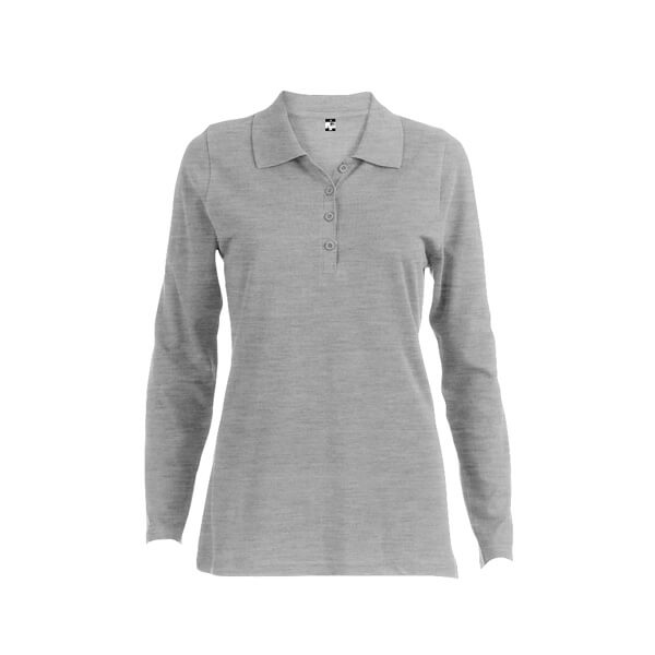 Dámská polokošile s dlouhým rukávem ze 100% bavlněného piké (210 g/m²). Barva 83: 85% bavlna a 15% viskóza. Žebrovaný límec a rukávy, žebrovaná výztuž na límci a vyztužená léga se 4 barevnými knoflíky. Spodní část s bočními rozparky. Náhradní knoflík ve vnitřním švu. Střiženo a sešito.