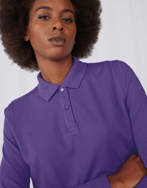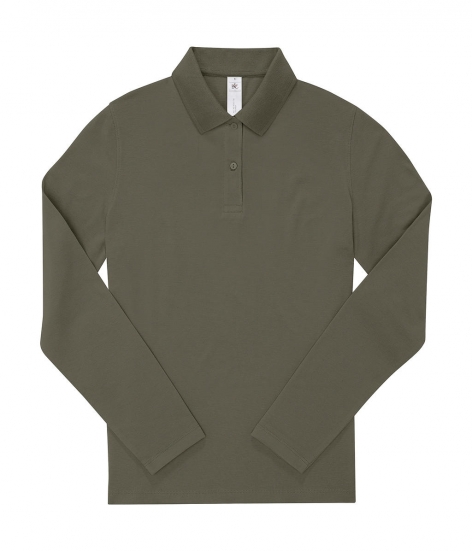 180 g/m², 100% bavlna, předsrážená a prstencová (Fine Piqué), Sport Grey: 90% bavlna, 10% viskóza, jemná na dotek, zpevňující páska na ramenou, dlouhé rukávy, žebrovaný límec a manžety rukávů, 2 knoflíková plaketa, knoflíky v odpovídající barvě, boční švy, rovný povrch pro jasné a ostré výsledky potisku, tvarovaný střih
