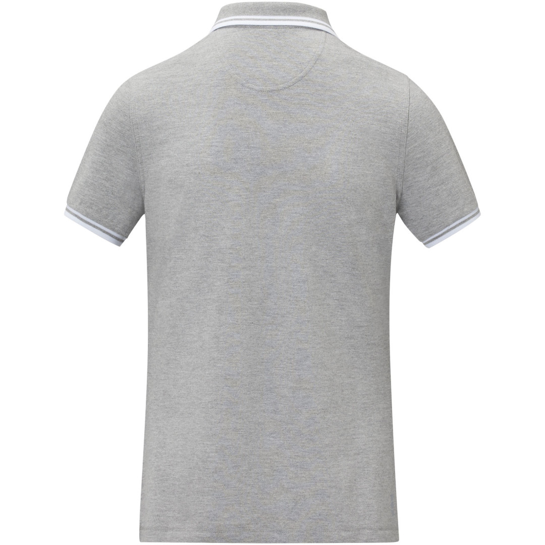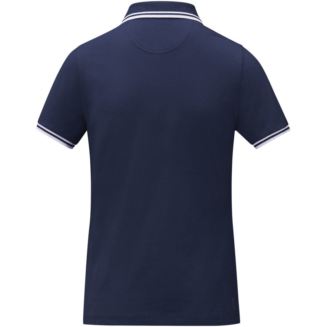Plochý žebrový límeček. Žebrový úplet manžetek. Kontrastně barevný lem na límci a rukávech. Zapínání na tři knoflíky. Detaily s vyšívacím stehem. Saténová lemovka výstřihu. Boční rozparky se saténovou lemovkou. Sedlo. Předsunutá zpevňující lemovka výstřihu s řetízkovým švem. Gravírované knoflíčky ve stejné barvě. Potisk štítku technologií heat transfer pro větší pohodlí. 200 g/m2