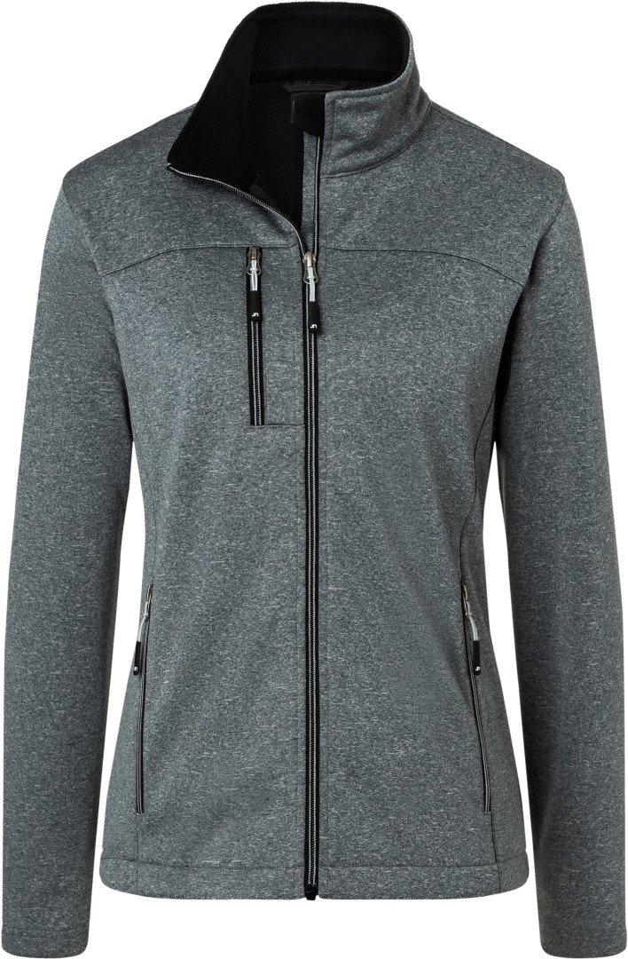 280g/m², 100% polyester 2 vrstvý softshell materiál, Dotek podobný hladkému fleece materiálu, stojací límec, propínání na podložený zip s chráničem brady, 2 boční kapsy a 1 náprsní kapsa na zip, uvnitř fleece v kontrastní barvě, lehce vypasovaný střih