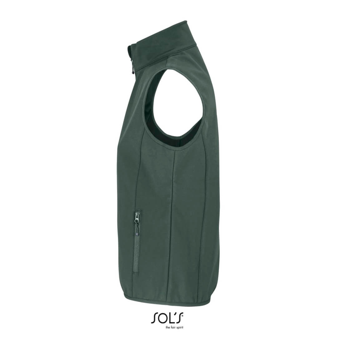Recyklovaný polyester / elastan – 3 vrstvy, vnitřní flís: 100% polyester | Udržitelná tkanina | Softshell 270 | Pohodlný střih | Otevírání na zip | 2 boční kapsy a 1 kapsa na hrudi se zipem | Kontrastní zipy | Elastický šikmý střih v průramcích a na lemu | Odtrhávací štítek