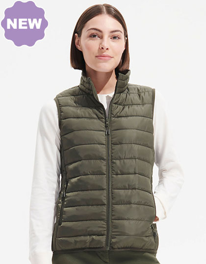 Vnější materiál a podšívka: 100 % polyester, zateplení: 100 % polyesterové peří. Taft 280T. Přední zapínání a boční kapsy se sladěným nylonovým zipem. Sladěné kovové posuvníky s černými stylovými jezdci. Vysoký límec. Sladěné elastické lemování na průramcích a spodní části. Úložný vak. Bez štítku.