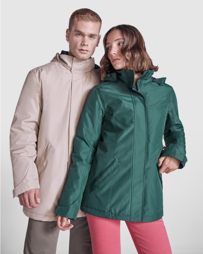 Nepromokavá zateplená parka pro ženy. Slim-fit. Vysoký límec a zapínání na suchý zip. Praktická skládací kapuce. Centrální zip ladící s klopou. Boční kapsy se zipem a pevnou klopou. Vnitřní kapsa se zapínáním na suchý zip. Nastavitelné manžety s poutkem na opasek. Možnost přístupu k výztuhám na zádech a levé části hrudi.
