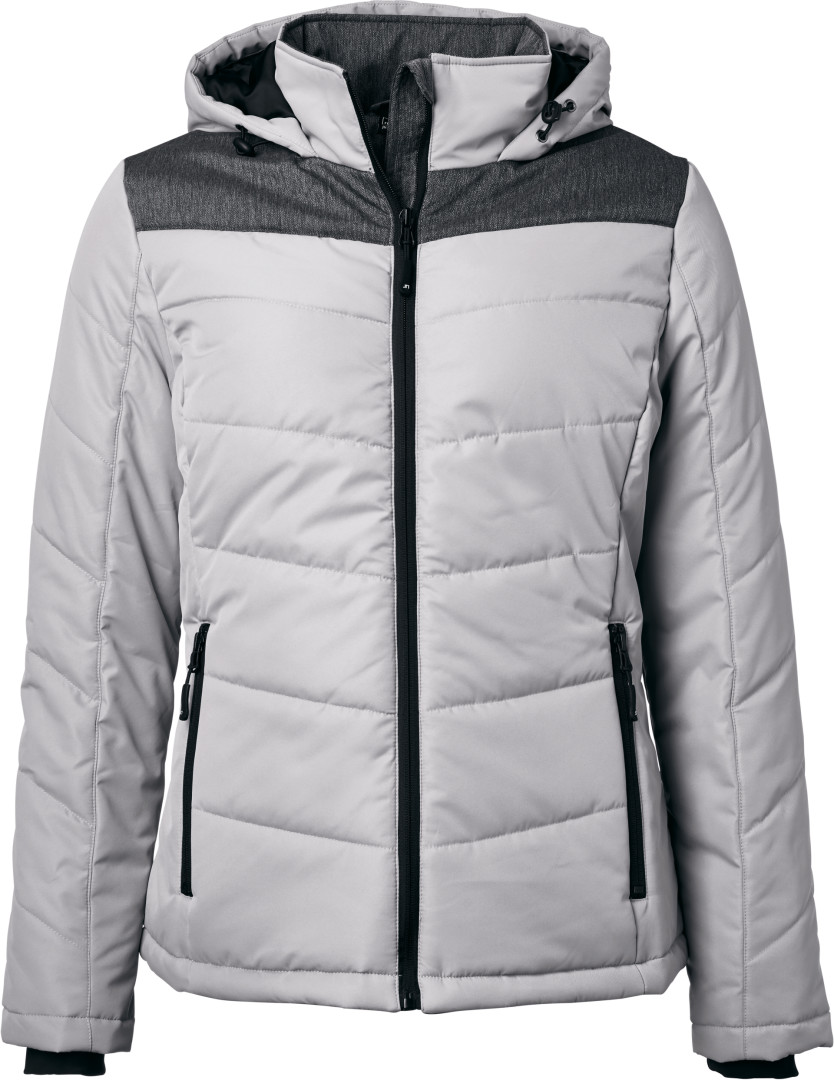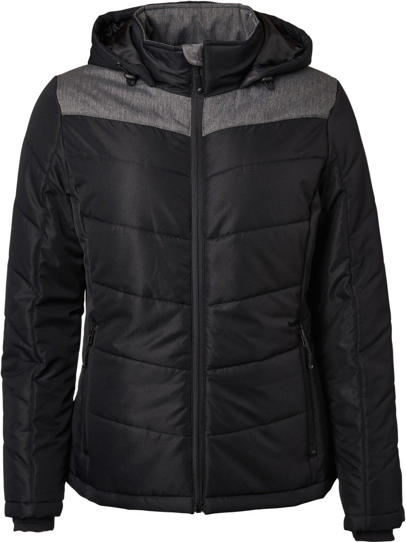 vnější materiál: 100% polyester, textilie 2: 100% polyester, podšívka: 100%, polyester, polstrování: 100% polyester větru a vodě odolná (1.500mm vodního sloupce), polstrovaná bunda v materiálovém mixu s prošívanými a dělicími švy, stojáček, nastavitelná kapuce, ochrana proti větru po celé délce, elastické vnitřní manžety, boční kapsy na zip, 1 vnitřní kapsa, uvnitř zip