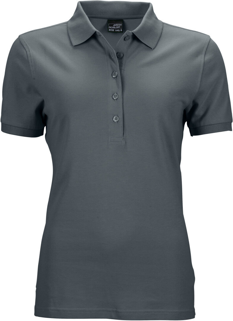 210g/m², 95% bavlna, 5% elastan vypasovaný střih, límec úplet, léga s 5 knoflíky, úpletový lem na rukávu, boční rozparky