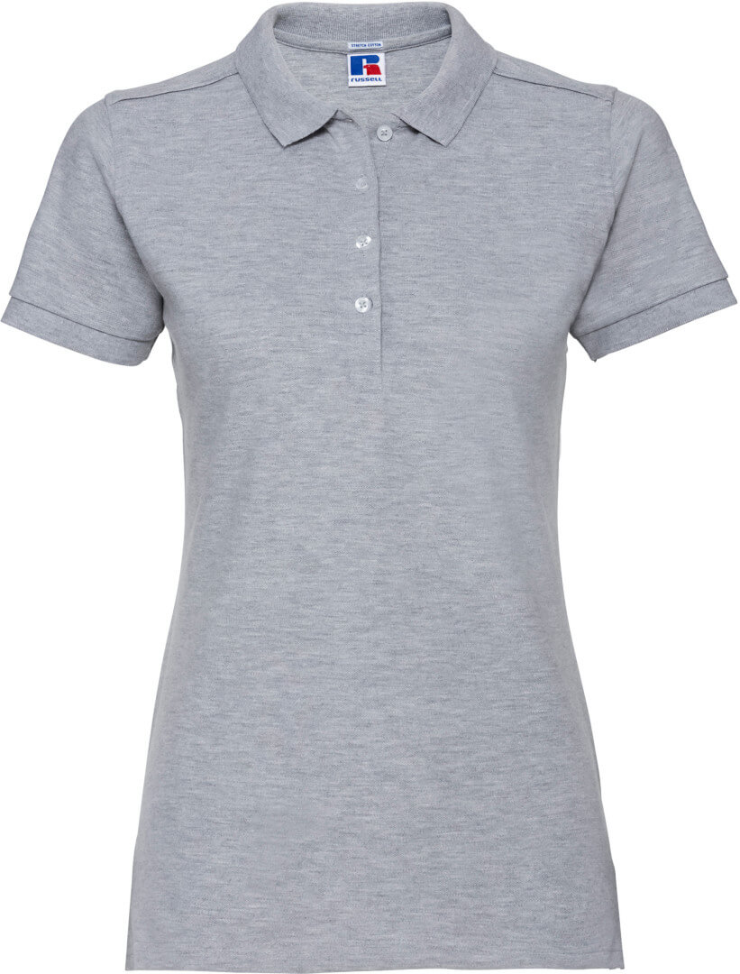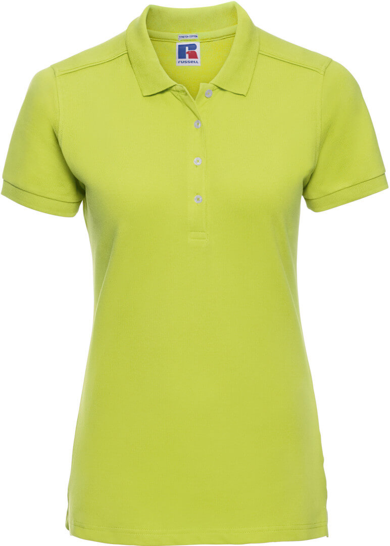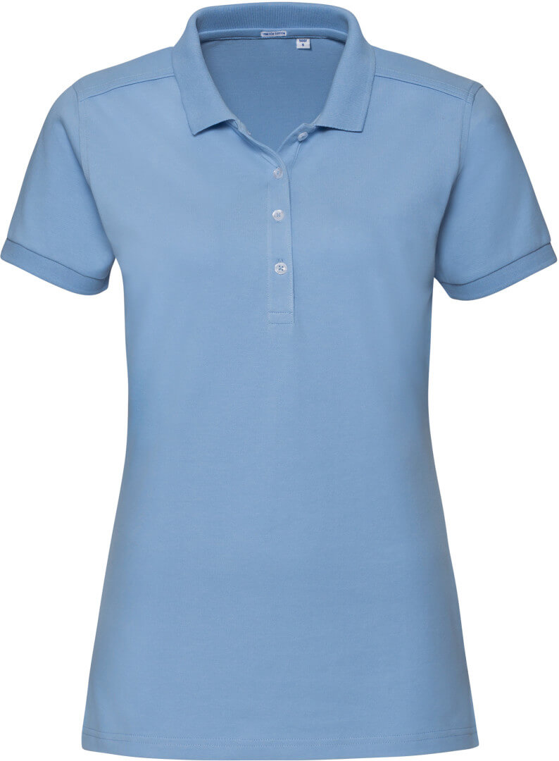 210g/m², 95% piqué bavlna, 5% Lycra® postavu zdůrazňující delší střih, plochý úpletový límec, léga se 4 knoflíky v kontrastních barvách, zpevňující lemovka, boční rozparky