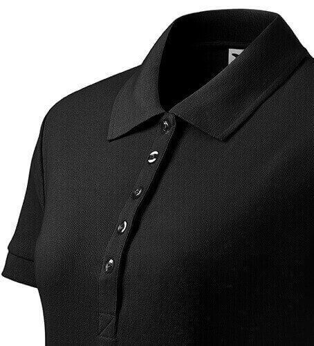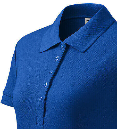 Dámská polokošile vyšší gramáže. Elegantní střih s bočními švy a malými rozparky. Límec a lemy rukávů jsou z žebrové pleteniny 1x1. Léga s 5 knoflíky v barvě materiálu. Průkrčník je začištěný páskou. Zpevněný ramenní šev. Vhodné na výšivku.
