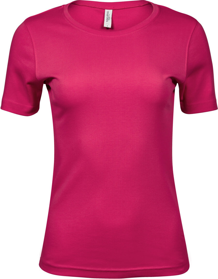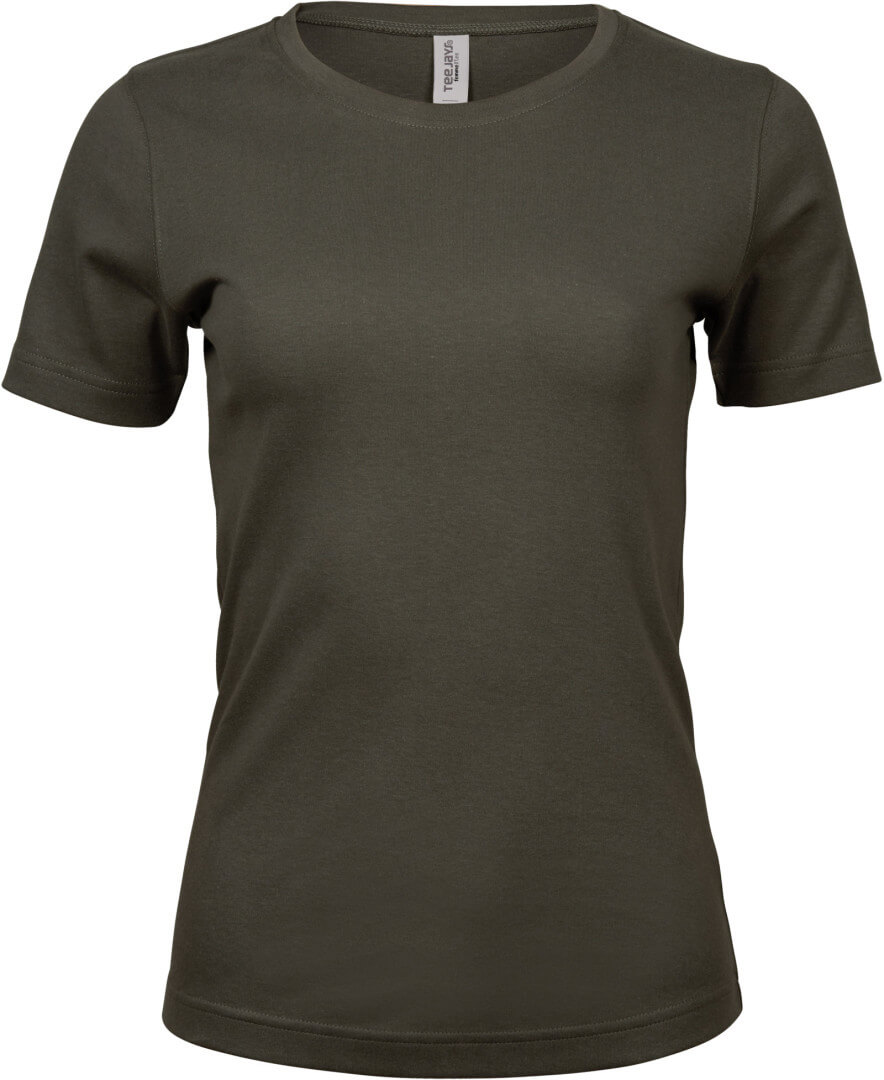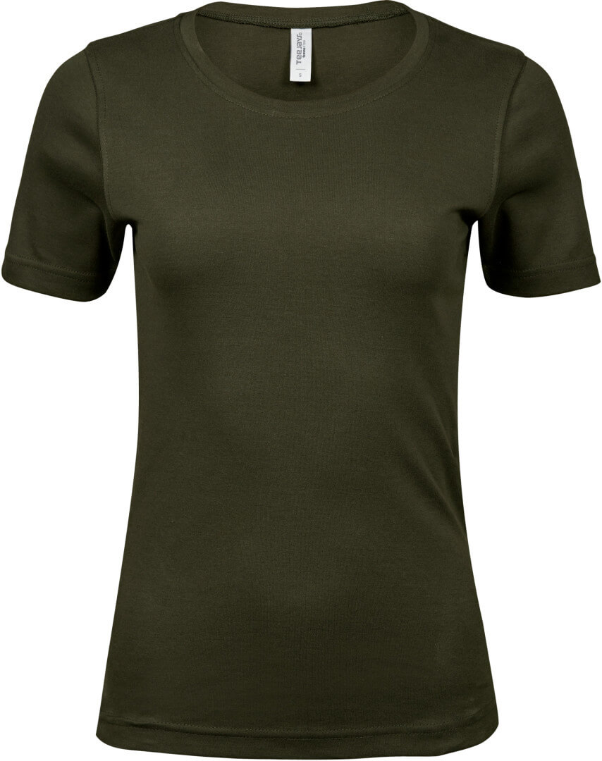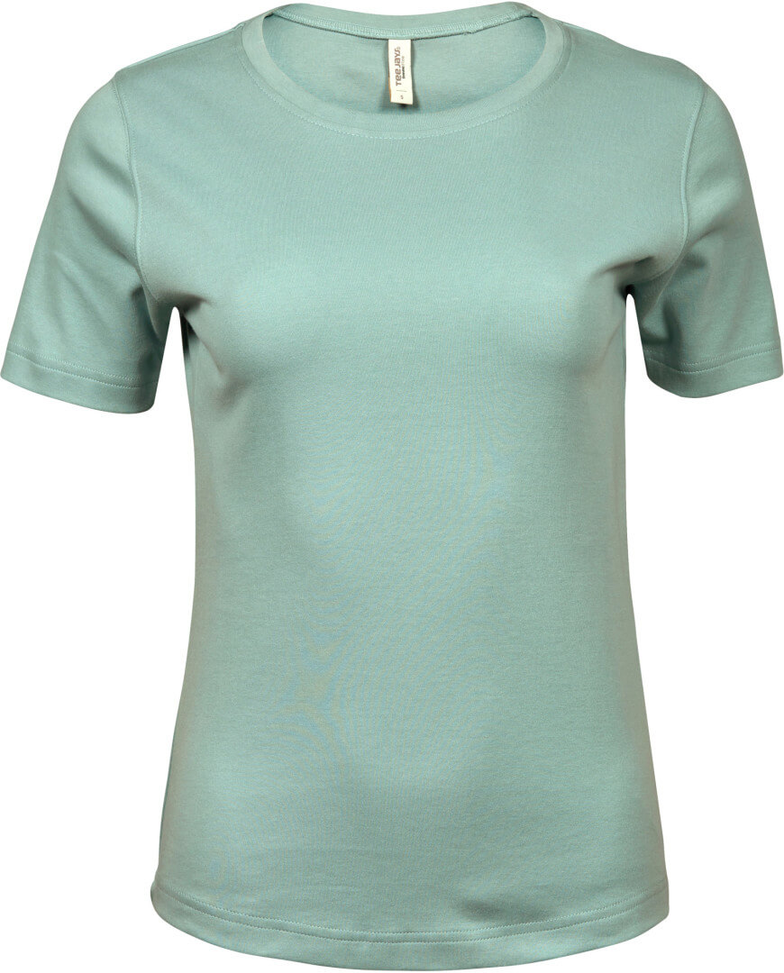 220g/m², 100% česaná bavlna vypasovaný střih, kvalitní bavlněný Interlock, práno v silikonu pro velmi hebký dotek, úzký žebrový lem výstřihu, strečový, dvojité prošití