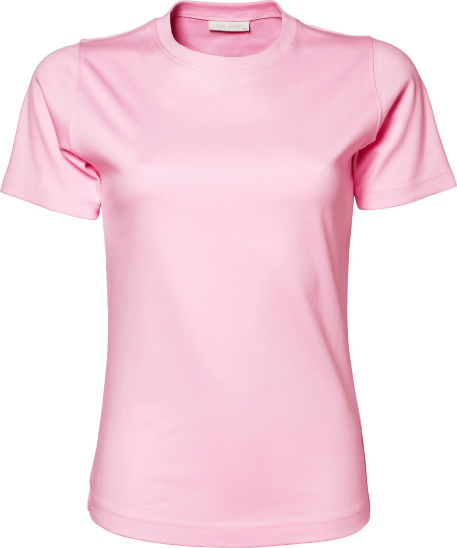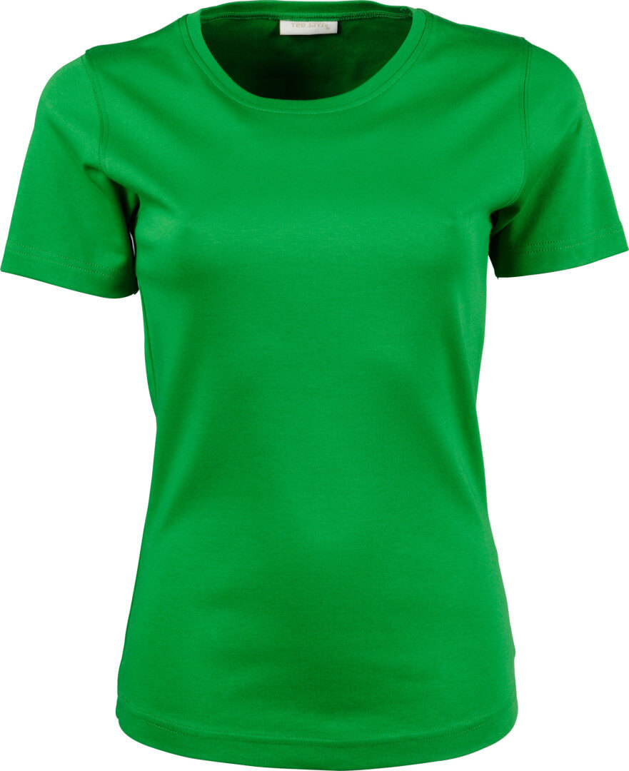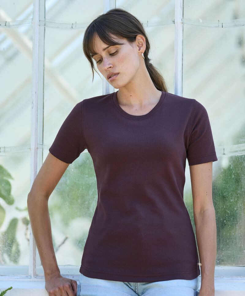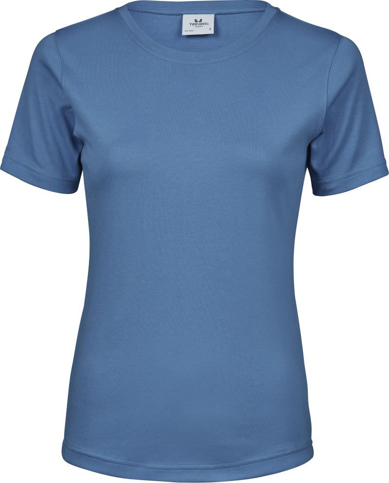 220g/m², 100% česaná bavlna vypasovaný střih, kvalitní bavlněný Interlock, práno v silikonu pro velmi hebký dotek, úzký žebrový lem výstřihu, strečový, dvojité prošití